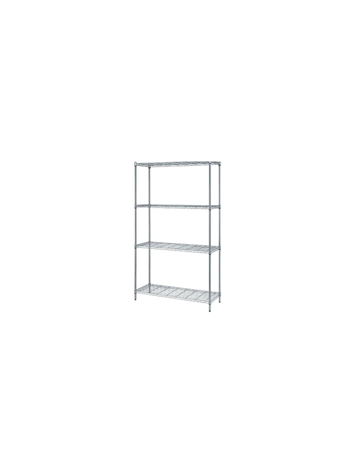 The wire design allows for air circulation and minimal dust buildup. Shelves easily adjust on 1" increments to your exact needs. Ideal storage solution for any commercial, office, warehouse or home application. Available in Bright Chrome or Green Epoxy finish. FOB Shipping Point.