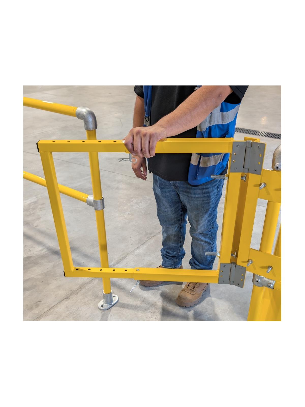 The adjustable swing gate is adjustable in 2" increments between the described smallest and largest sizes of each group option. Mounting hardware is included with each gate. The stopping position can be adjusted with the hardware included. FOB Shipping Point.