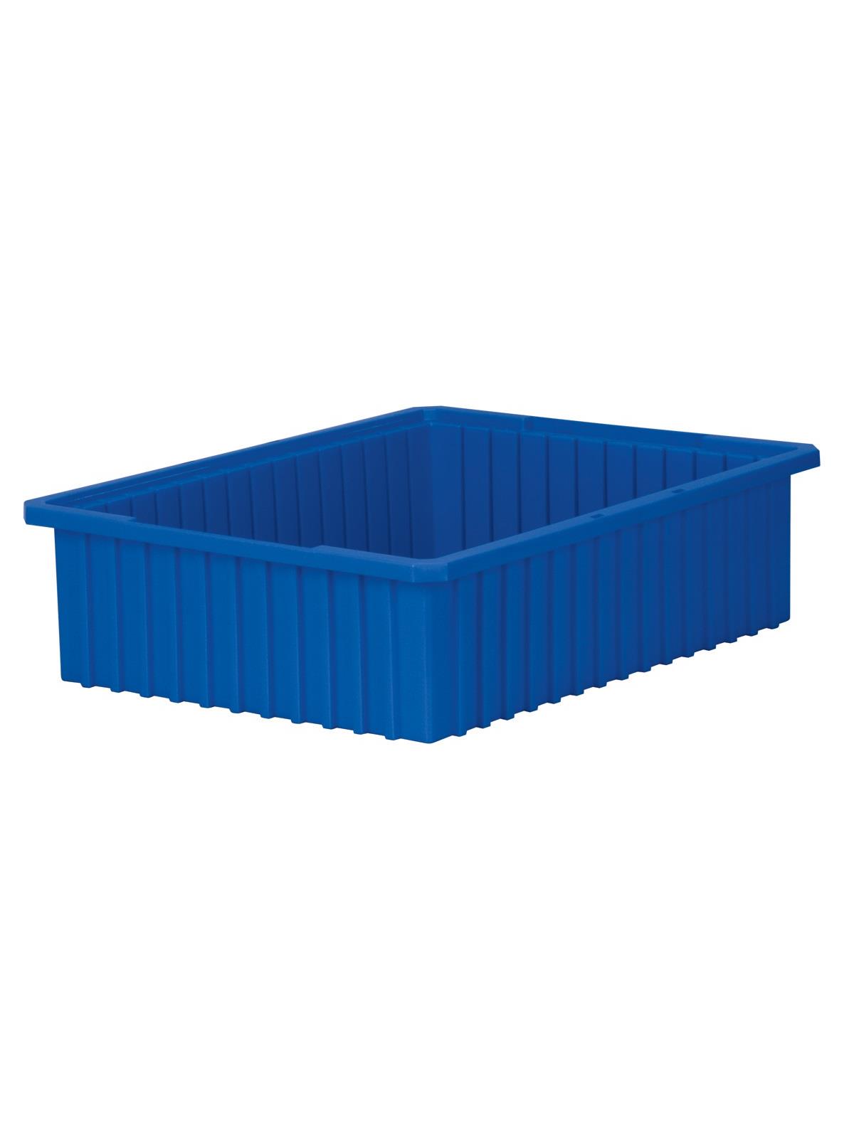 Intersecting dividers allow the container to be subdivided in separate compartments as small as 1-1/8" sq. Injection-molded from high density polyethylene -- resists most solvents and chemicals. Compatible with most racks, shelving and automated material handling equipment. Available in Red, Blue, or Gray. Dividers and lids sold separately. FOB Shipping Point.
