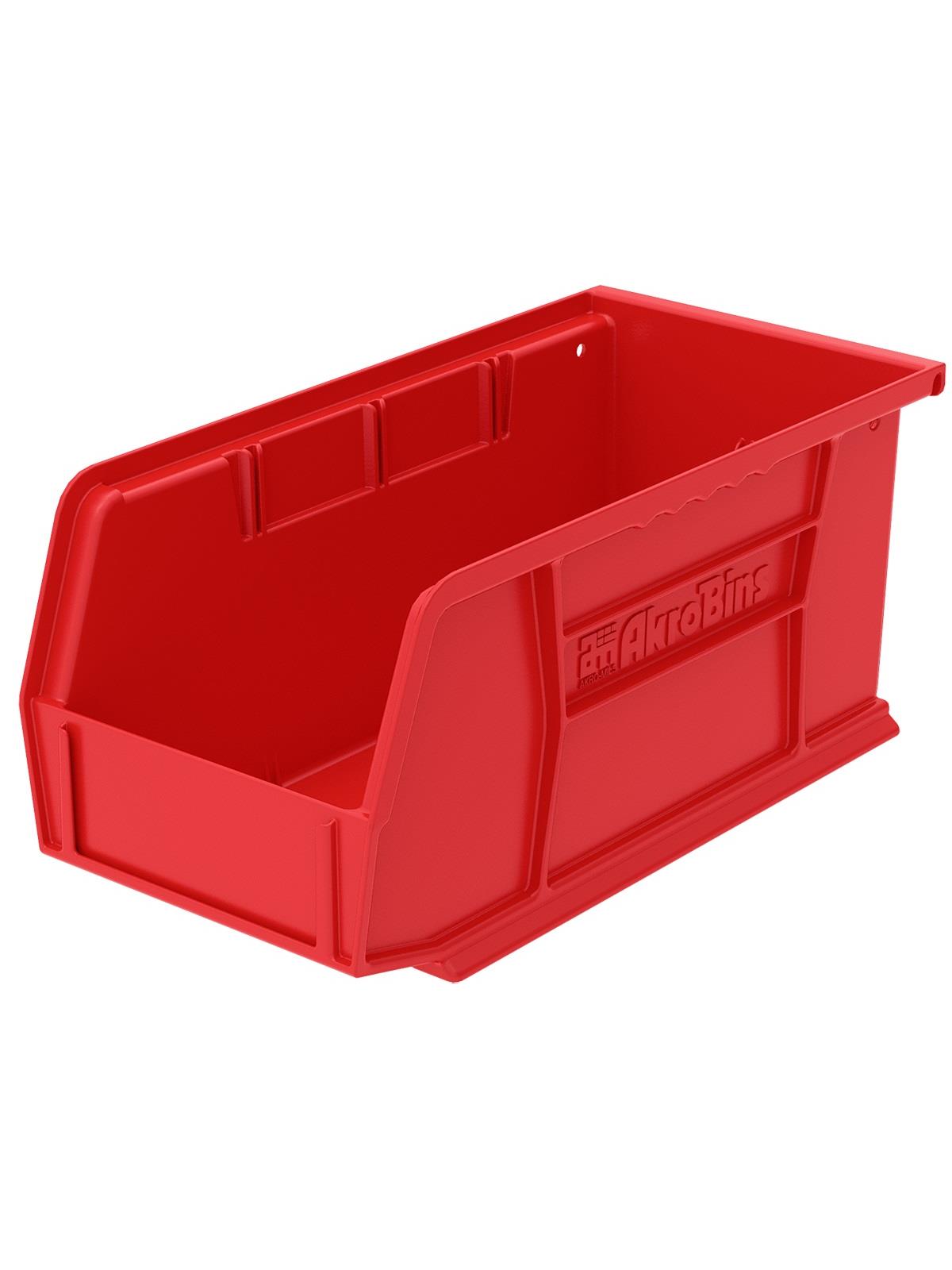 AkroBins are heavy-duty and securely stack on top of each other, sit on shelving, and hang from Akro-Mils racks, panels, rails and carts. Unaffected by weak acids and alkalis the sturdy one piece construction is water, rust and corrosion-proof. Finger grip allows for easy handling. Large label slot for easy identification of contents. Autoclavable up to 250° F. Guaranteed not to crack or break under normal load conditions as stated in the 1-year limited warranty. Optional dividers and labels available, see Related Items tab. AkroBins available in Red, Yellow, Blue, Green, Black, Stone, and Semi-Clear. FOB Shipping Point.