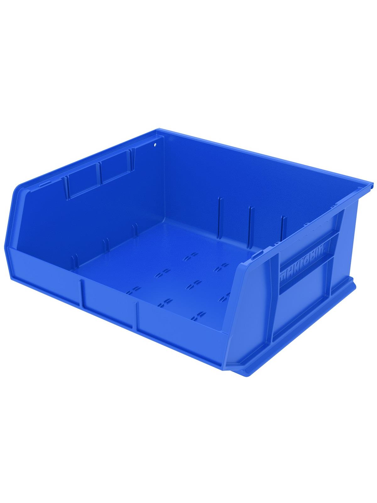 AkroBins are heavy-duty and securely stack on top of each other, sit on shelving, and hang from Akro-Mils racks, panels, rails and carts. Unaffected by weak acids and alkalis the sturdy one piece construction is water, rust and corrosion-proof. Finger grip allows for easy handling. Large label slot for easy identification of contents. Autoclavable up to 250° F. Guaranteed not to crack or break under normal load conditions as stated in the 1-year limited warranty. Optional dividers and labels available, see Related Items tab. AkroBins available in Red, Yellow, Blue, Green, Black, Stone, and Semi-Clear. FOB Shipping Point.