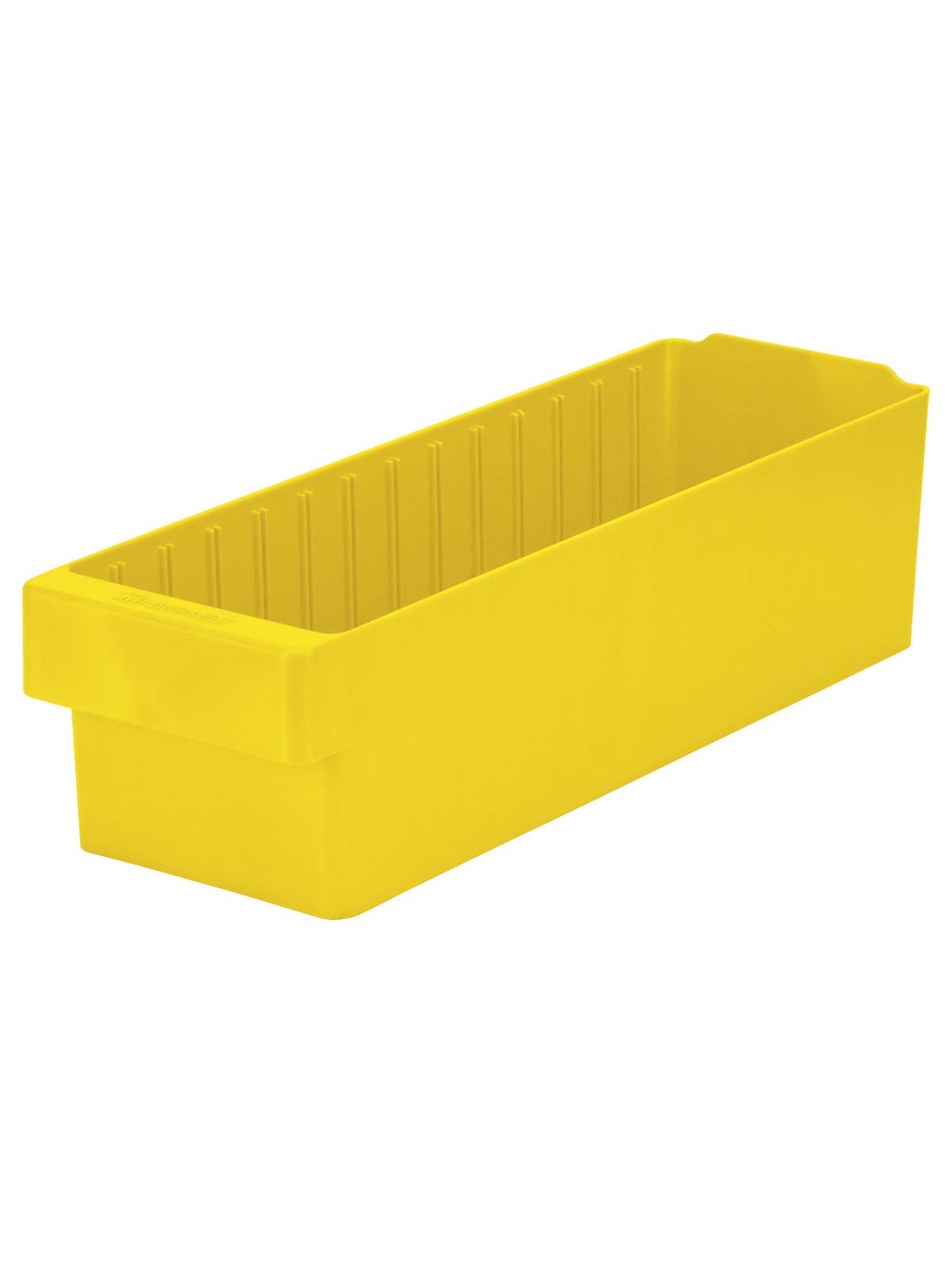 Offered in 12" or 18" depths to work with compatible shelving. Easy to label and color code inventory for quick identification of parts and supplies. Drawers can be stacked to optimize space. Wide front handle for easy gripping when AkroDrawers are loaded or contain heavy contents. Can be used with available shelving, racks, mobile carts or can be used by themselves. Sturdy back stop tab ensures AkroDrawers can hang securely from shelves. Dividers are available to keep contents neatly separated in drawers. Available in Blue, Gray, Yellow, Red and Clear - Minimum order required. FOB Shipping Point.