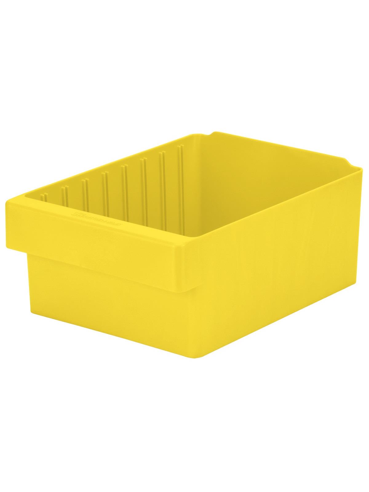 Offered in 12" or 18" depths to work with compatible shelving. Easy to label and color code inventory for quick identification of parts and supplies. Drawers can be stacked to optimize space. Wide front handle for easy gripping when AkroDrawers are loaded or contain heavy contents. Can be used with available shelving, racks, mobile carts or can be used by themselves. Sturdy back stop tab ensures AkroDrawers can hang securely from shelves. Dividers are available to keep contents neatly separated in drawers. Available in Blue, Gray, Yellow, Red and Clear - Minimum order required. FOB Shipping Point.