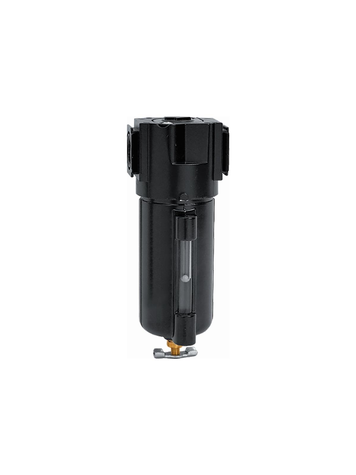 1/2" Standard Particulate Water Removing Filter. 40 Micron Sintered Bronze Element. 6 oz. Metal Bowl with Sight Glass. Manual Drain. 100 SCFM. 50 PSI Max. FOB Shipping Point.