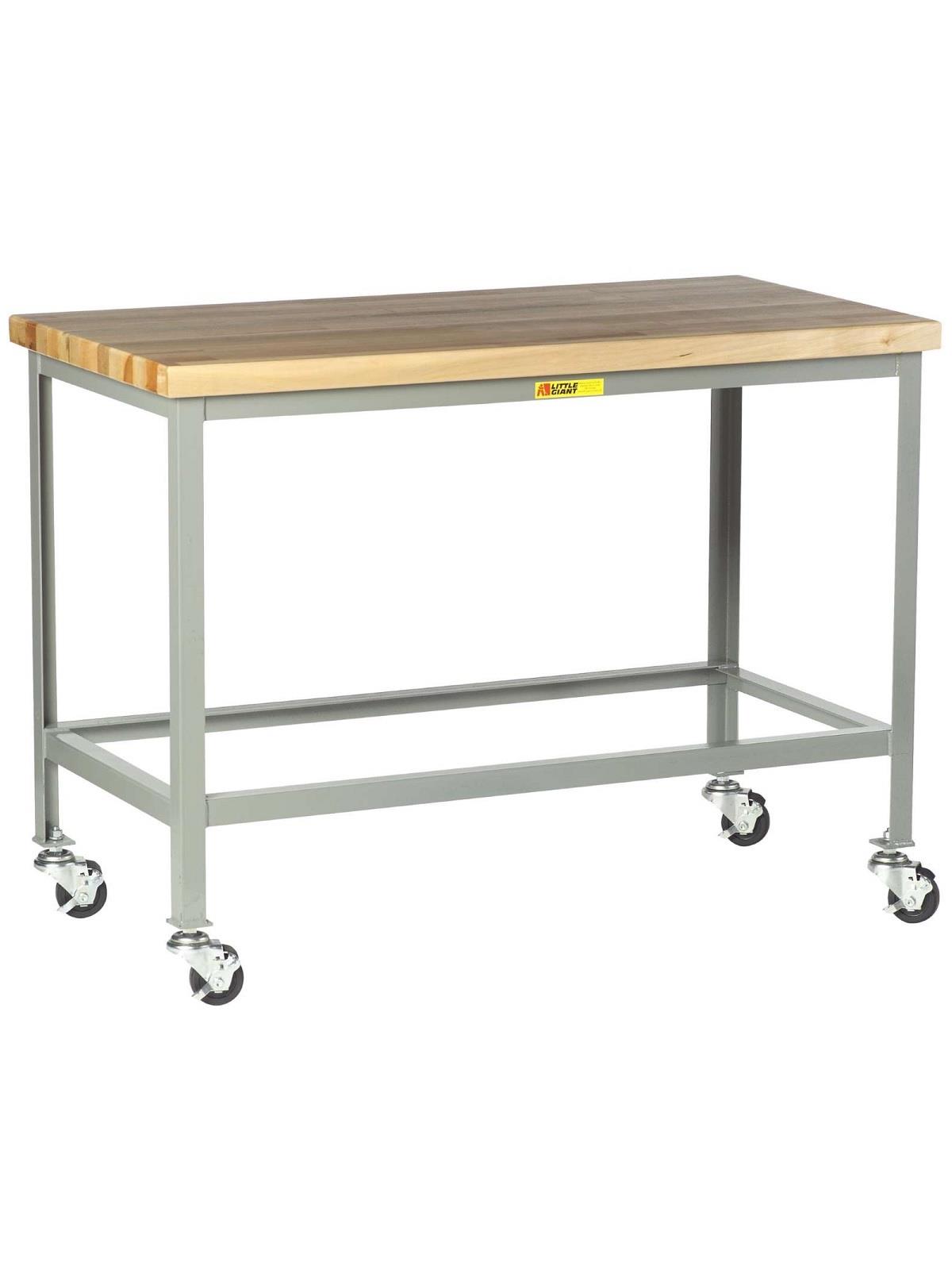 1-3/4" thick Butcher Block Top on welded steel frame for long lasting durability. Fully assembled and ready to use. FOB Shipping Point.