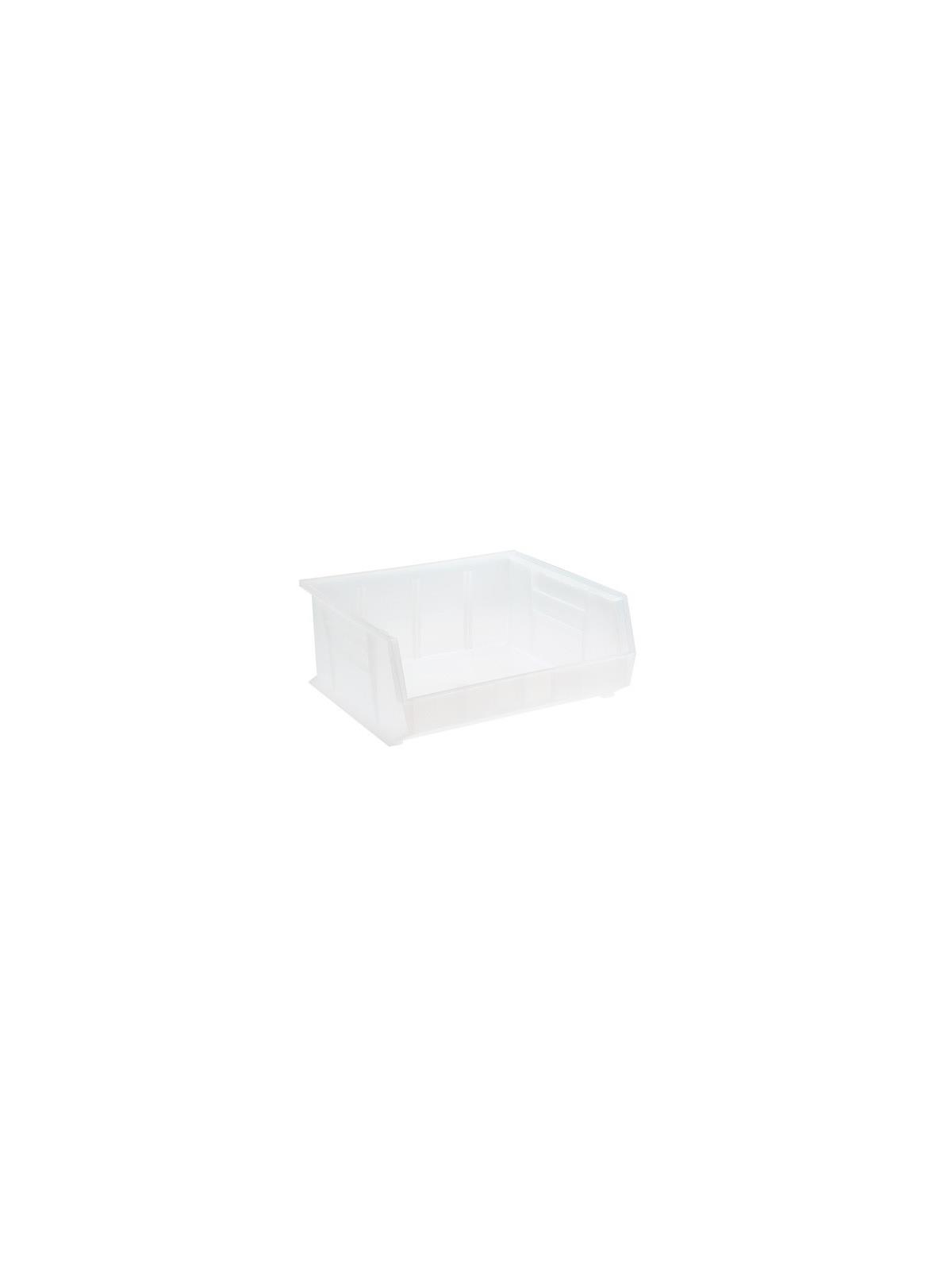 Organize your inventory with strong injection molded polypropylene bins. Front, back and side grips for easy handling. Built-in rear hanger allows bins to hang from louvered panels or rails. Optional clear injection molded crystal styrene window increases bin capacity and provides quick view of bin contents. Dividers maximize flexibility and keep contents organized. Wide stacking ledge and anti-slide lock keep stacked bins steady and prevent forward shifting. Waterproof bins resist rust and corrosion. Large molded front label slots for ID labels. Autoclavable up to 250°F and resistant to extreme cold. FOB Shipping Point.