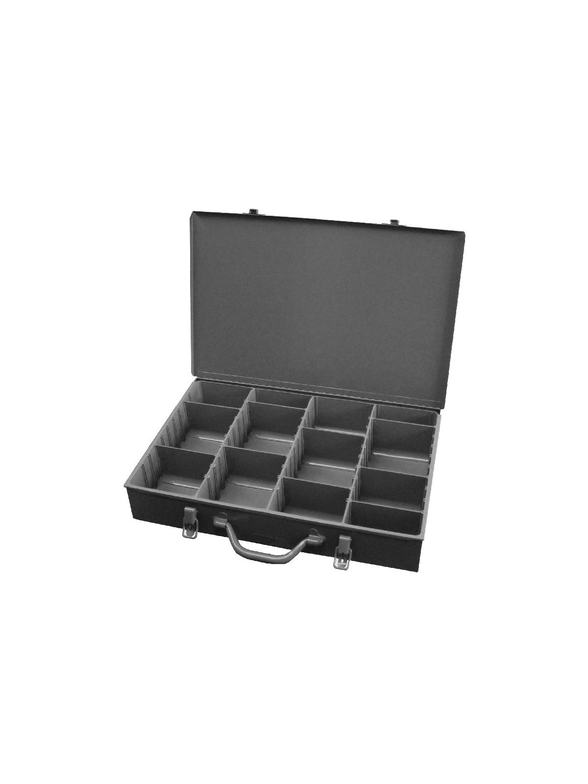 Efficient storage and organization for a variety of parts and components. Each compartment box interior is manufactured of polypropylene with scooped bottoms, both front and back for easy parts removal. Rugged steel, all-welded cabinets are reinforced for rigidity. Use on the workbench, counter or carry to the job site with convenient thumb-grip handles. Finished in acid and rust resistant Gray powder coating. FOB Shipping Point.