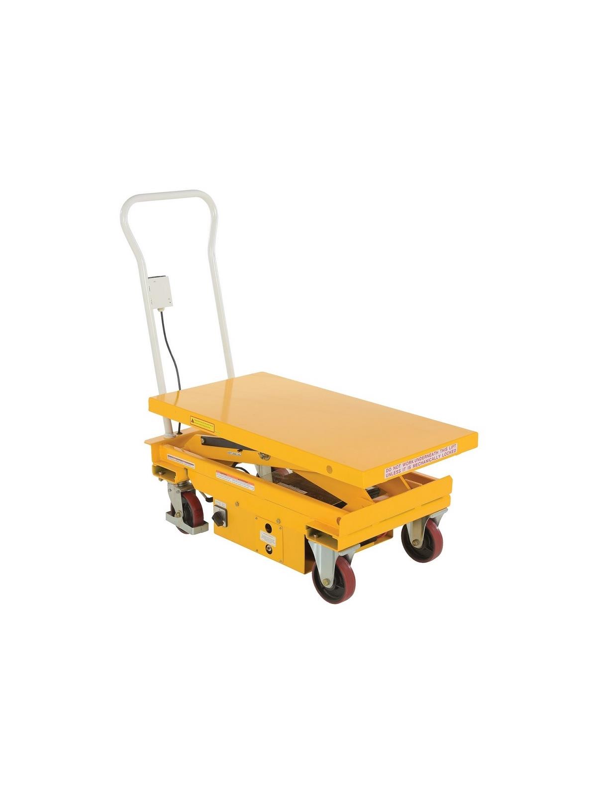 These carts are ideal for quick lifting and ergonomic material handling. Battery-powered units allow operators to raise and lower platform with the push of a button. Units roll on two (2) rigid and two (2) swivel polyurethane casters. Includes one (1) 12V battery and an on-board charger. HCART-1000-WD-DC has poly-on-steel casters. FOB Shipping Point.