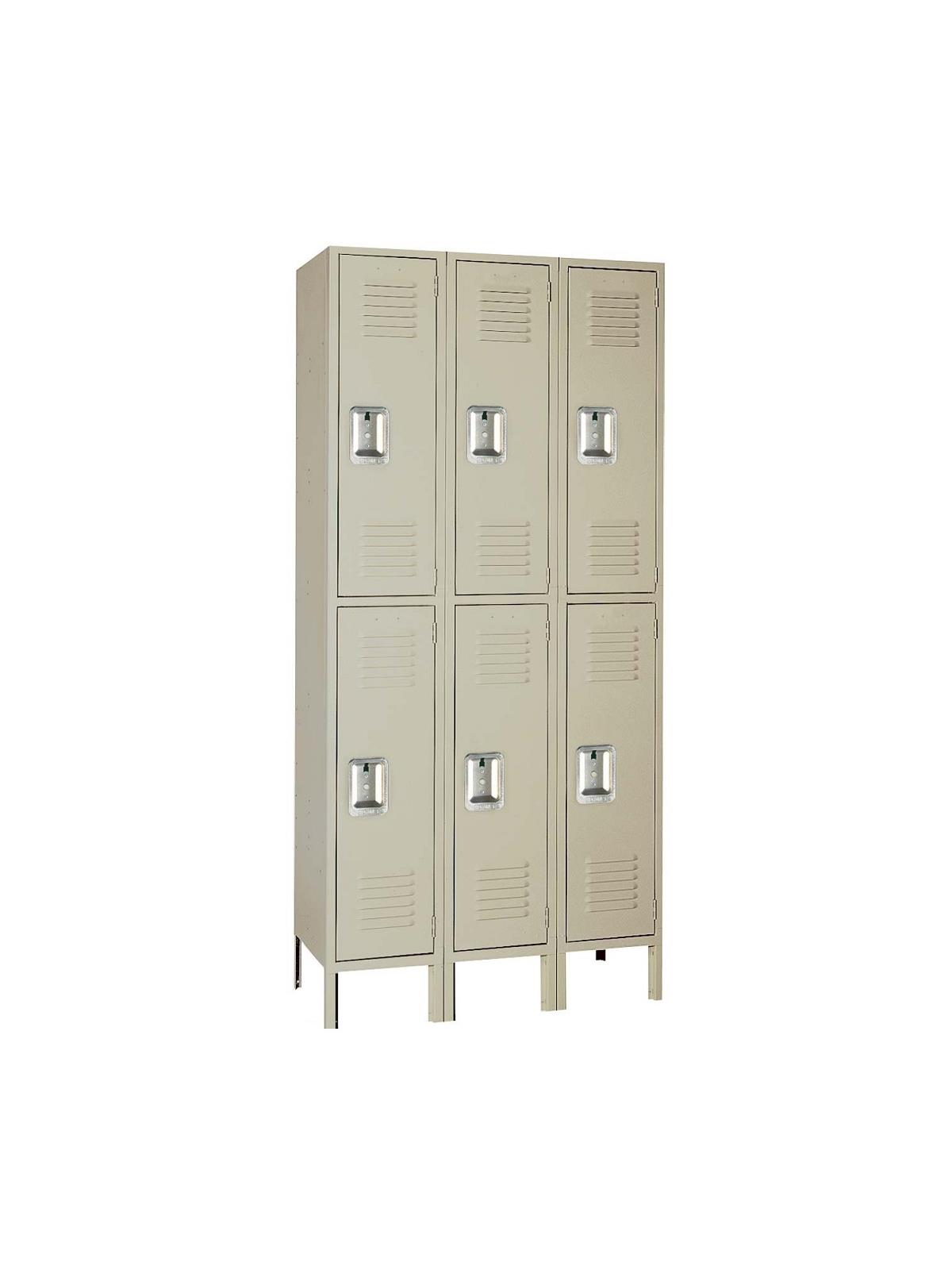 Double Tier Lockers - Features steel recessed handle and hooks for hanging clothing and other items.