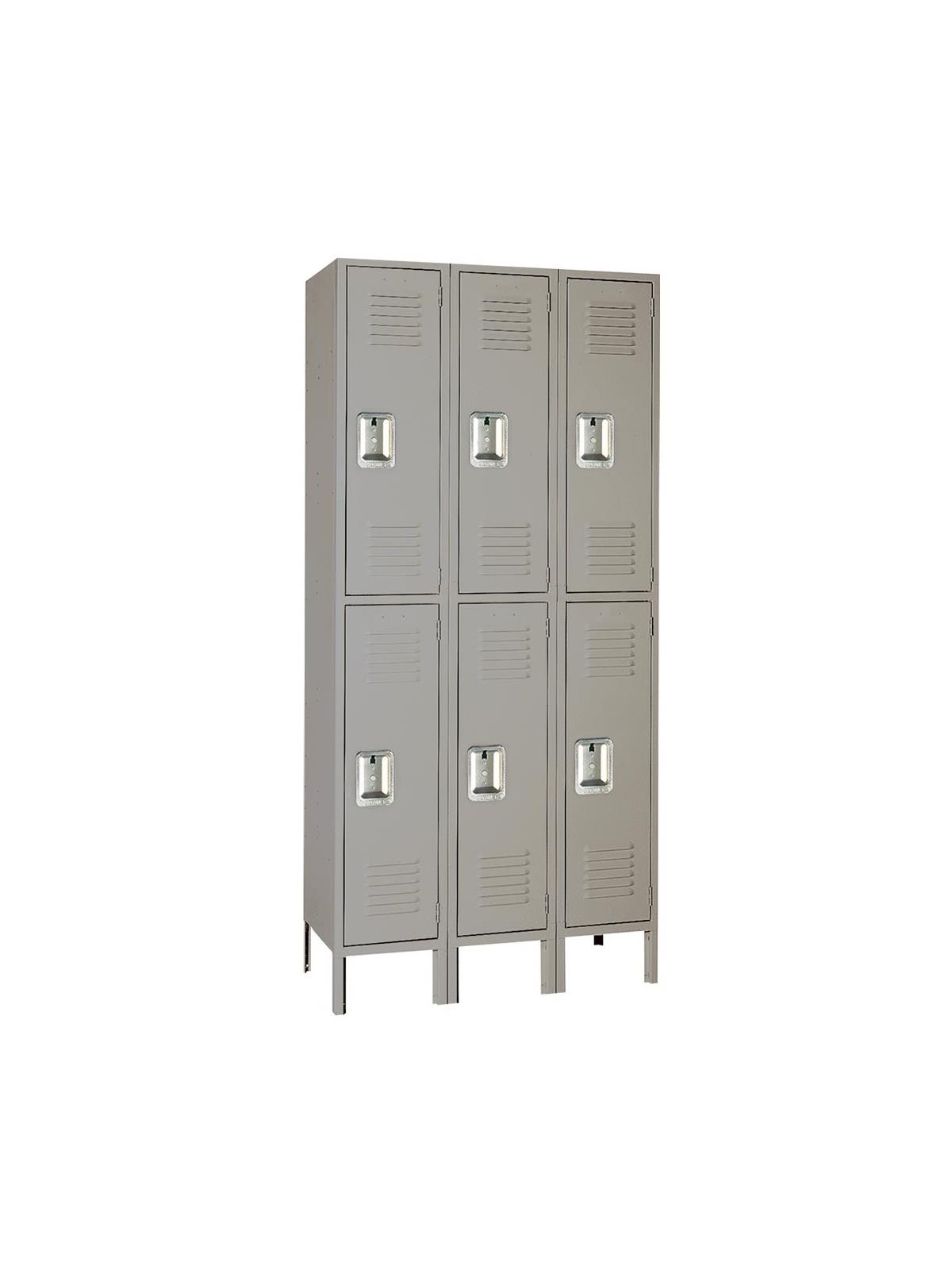 Double Tier Lockers - Features steel recessed handle and hooks for hanging clothing and other items.