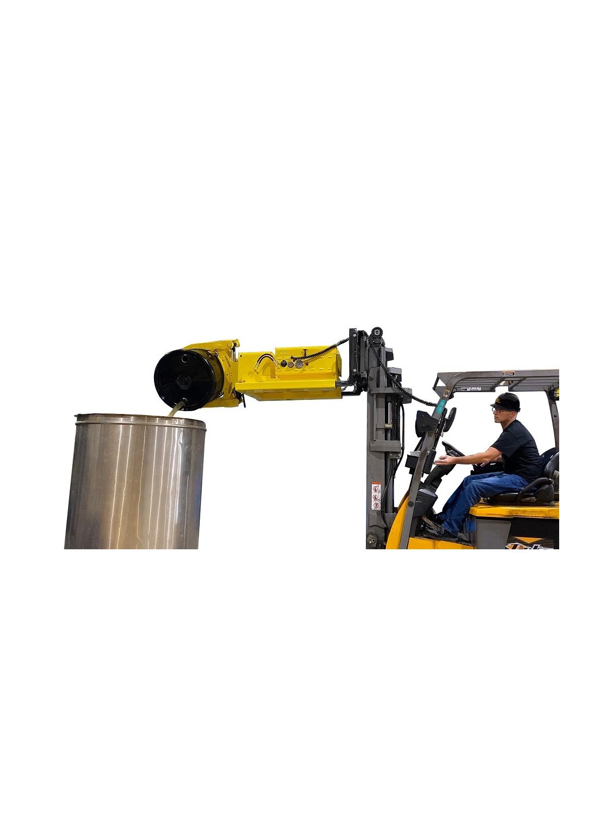 The EG2000RCR is a self-powered lift truck attachment which allows the operator to remotely manipulate drums from most lift trucks without the need for additional equipment or having to dismount the lift truck while clamping, lifting and rotating a drum. It offers the ability to clamp and rotate 18 to 28-inch diameter steel, plastic or fiber drums 360 degrees endlessly either left or right. The clamping pads are comprised of SBR rubber to provide a durable yet secure non marking surface to grip the drum. The maximum lifting capacity of the EG2000RCR is 2000 lbs., however the actual capacity and lift height may be limited by the specifications of your lift truck. The Eagle-Grip attachment includes two 12-volt AGM deep cycle batteries which are housed in a closable cabinet. The Quick-Claw option is also available, which eliminates the need for a safety chain. FOB Shipping Point.