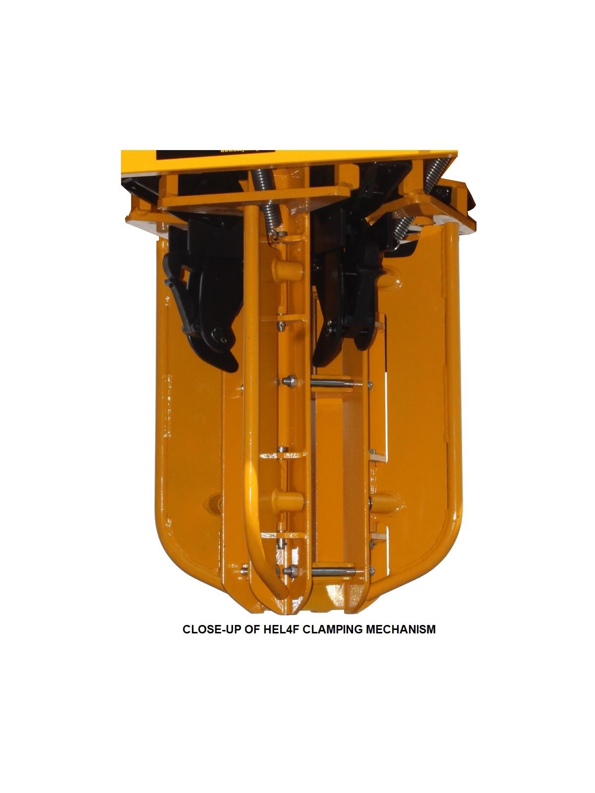 Easy Lift Equipment's Eagle-Grip® HEL4F Heavy-Duty Clamping Mechanism is designed for high-volume drum handling. The HEL4F is all-mechanical and capable of handling one to four fully loaded drums at a time without the need for hydraulic or electrical connections to the lift truck. It's the ideal attachment for loading or unloading trailers, oversea shipping containers or for palletizing drums from filling lines. The HEL4F consists of a floating head with a centering guide which helps properly position the clamping mechanism into place, while lowering the attachment between up to 4 drums. FOB Shipping Point.
