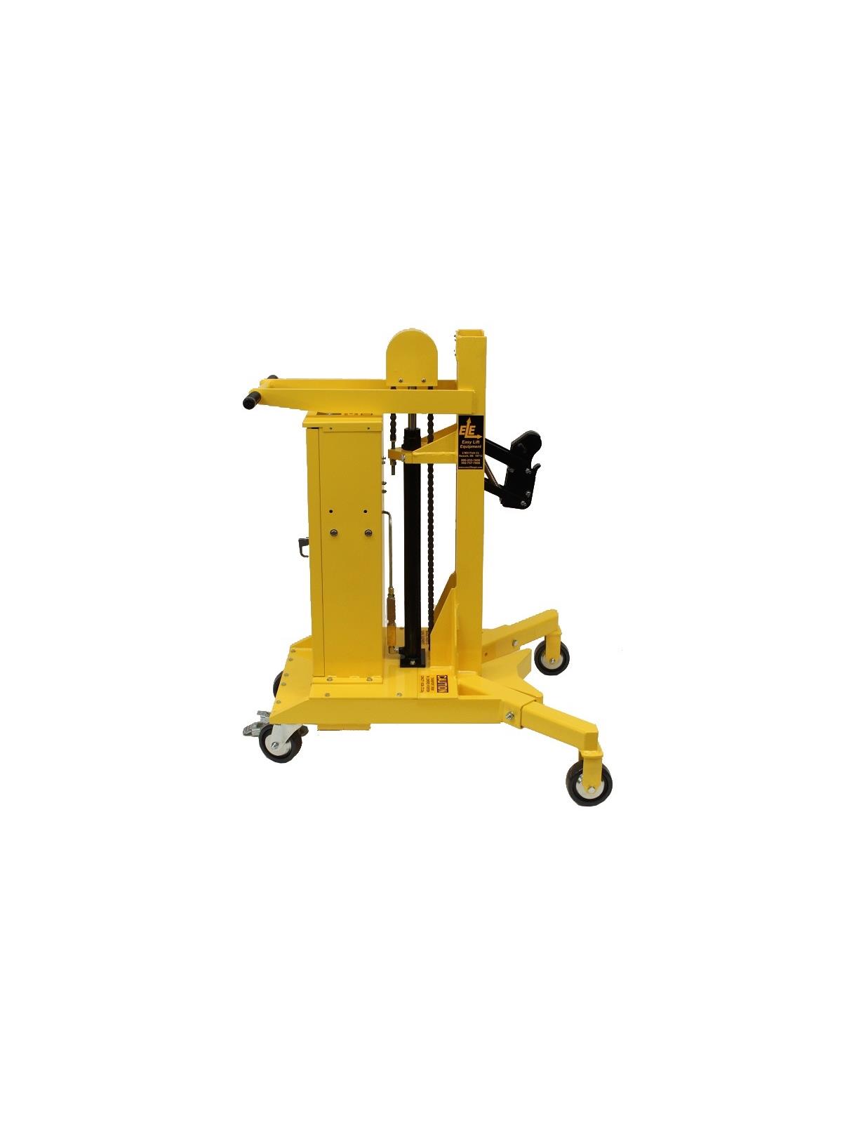 Easy Lift Equipment has developed an extensive line of ergonomic drum transporters since our original model was awarded a US patent in 1997. Designed for virtually maintenance-free operation our drum transporters help eliminate the risk of injuries caused by manhandling drums.  All models are available with both intrinsically or non-intrinsically safe scales; for quickly and accurately weighing drums without the need for floor scales. The EG1 and EG2L clamping heads are designed to handle a chimed plastic, steel, or fiber drum. All models are available with 20” of lift, with optional taller masts for double or triple stacking. Standard models are steel construction with safety yellow powder coating for durability. Optional FDA approved “metallic gray” powder coating, as well as full 304 stainless steel construction are also available for food and pharmaceutical applications. FOB Shipping Point.