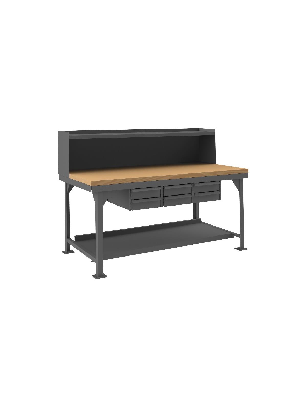 Description Workbench with Drawers and Top Shelf Riser