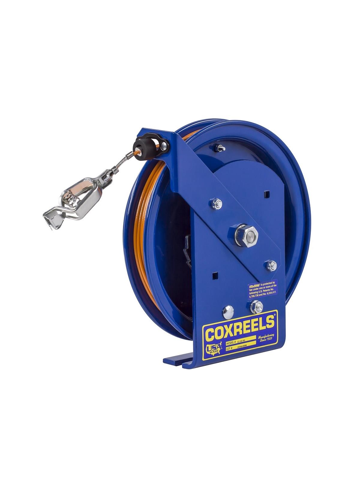 Controlled retraction reduces workplace accidents. Requires no electricity. Auto-rewind for fast easy pay out and take up. High quality heavy-duty steel construction. Non-sparking ratchet locks cable at desired length. 50 amp "jaw style" grounding cable. Includes 3/32" galvanized steel cable with 3/16" orange vinyl cover. Multi-position arm guide adjusts for wall, ceiling or floor mounting. Powder coated for greater durability. FOB Shipping Point.