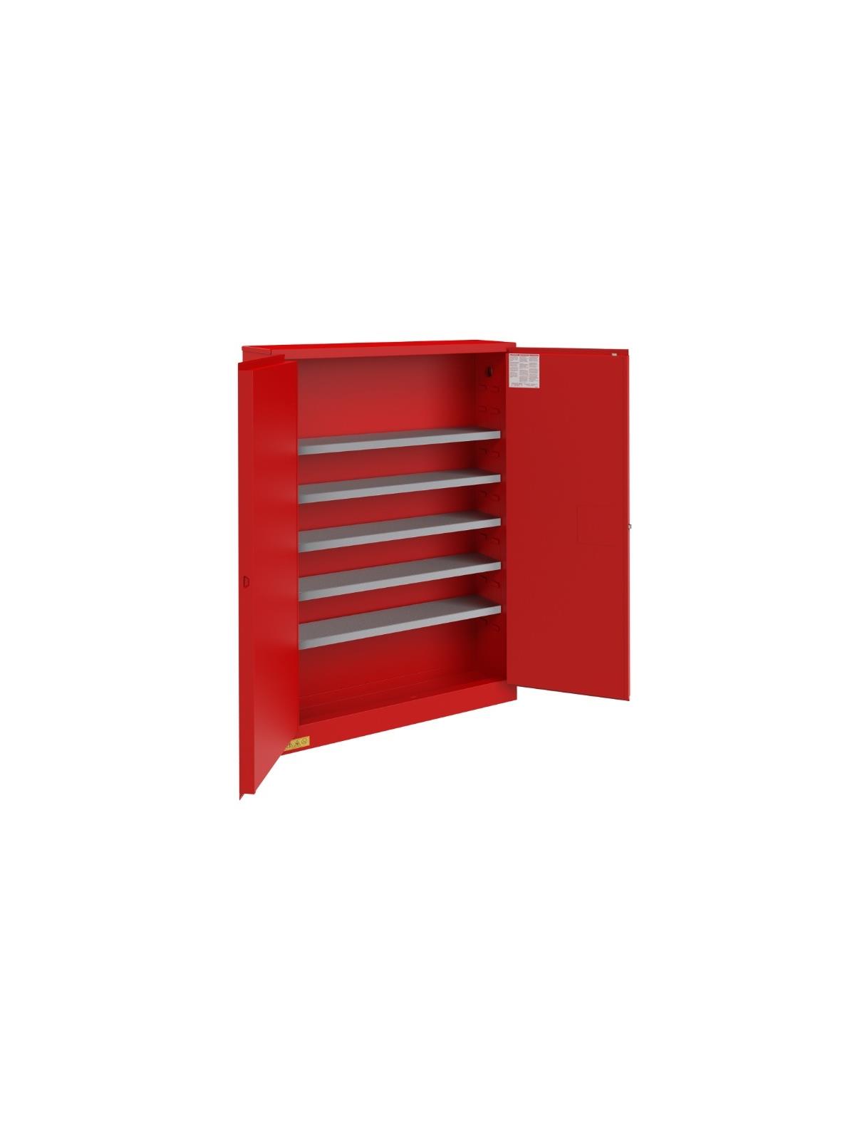 Flammable Storage Cabinets are required by OSHA and UFC in commercial and industrial facilities where flammable liquids are used and stored. Cabinets feature recessed lockable paddle latch and 3 point locking systems which greatly improves security. Bunged air vents on each side of the cabinet allows for greater ventilation. Constructed of all welded Heavy Duty Steel.