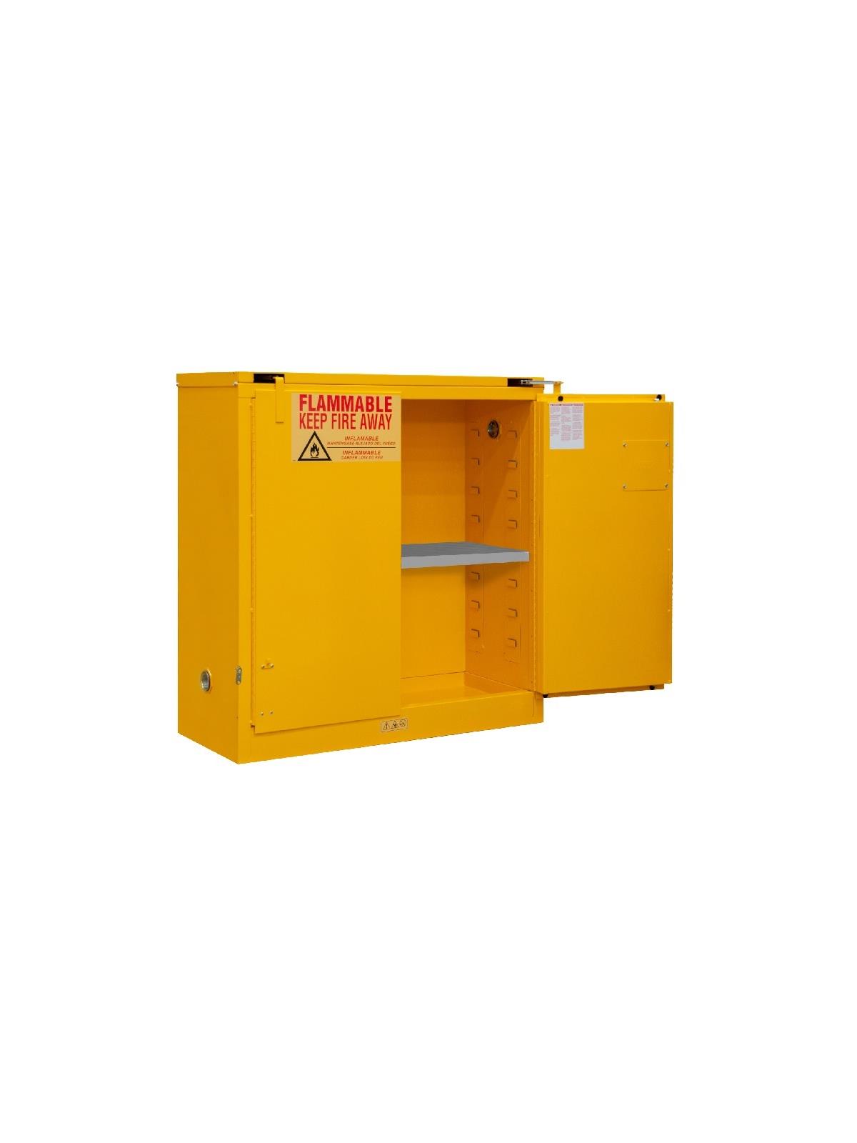 Flammable Storage Cabinets are required by OSHA and UFC in commercial and industrial facilities where flammable liquids are used and stored. Cabinets feature recessed lockable paddle latch and 3 point locking systems which greatly improves security. Bunged air vents on each side of the cabinet allows for greater ventilation. Constructed of all welded Heavy Duty Steel.
