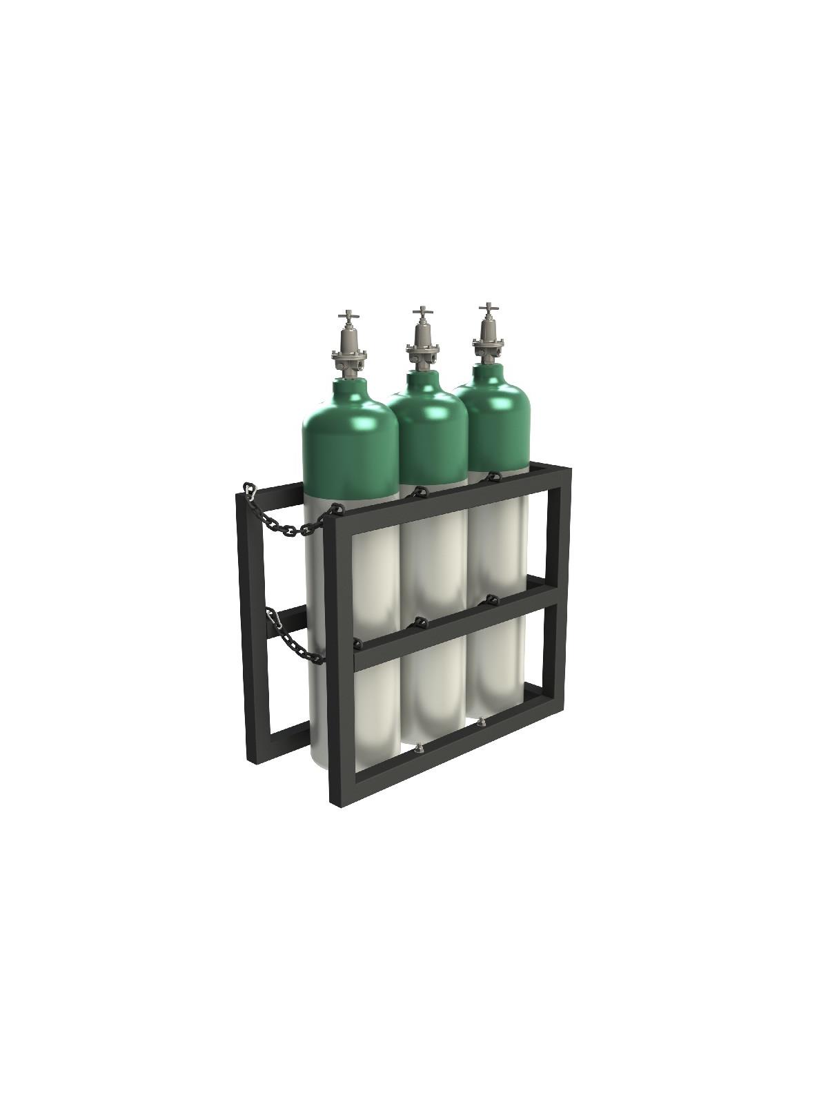3 gauge, steel tube material can be secured to the floor with included concrete anchors. Includes chains to secure and align the gas cylinders. Organize types in their own rows. Built to meet and exceed quality and safety standards of OSHA, OSHPD, UFC, NFPA and CGA. Ships fully assembled, ready for immediate use. Black, textured, powder coat finish, good for outdoor or indoor use. FOB Shipping Point.