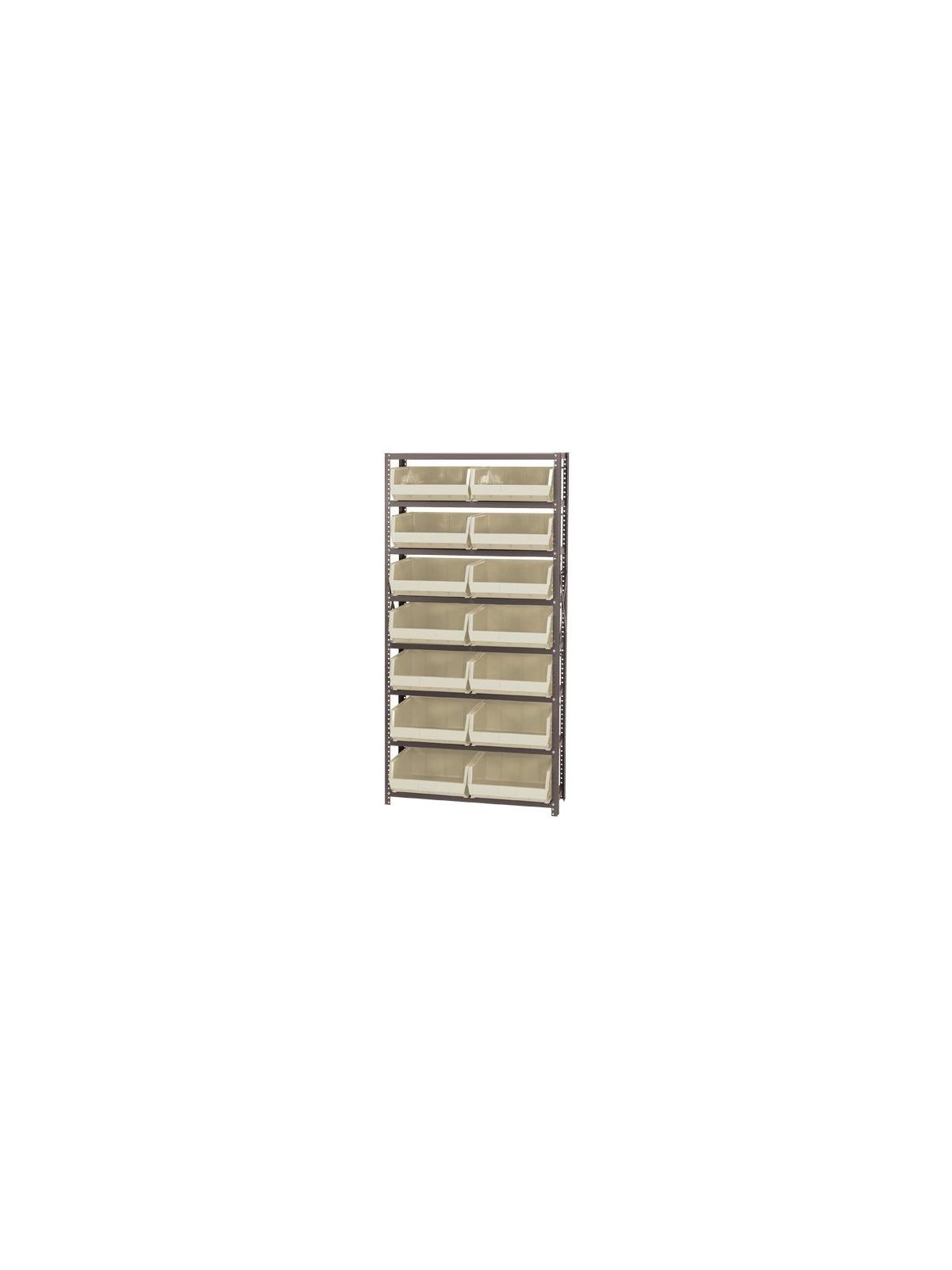 Sold complete with shelving and bins. 350 lb. capacity per shelf. Bins available in Yellow, Blue, Red, Green, Ivory and Black. FOB Shipping Point.