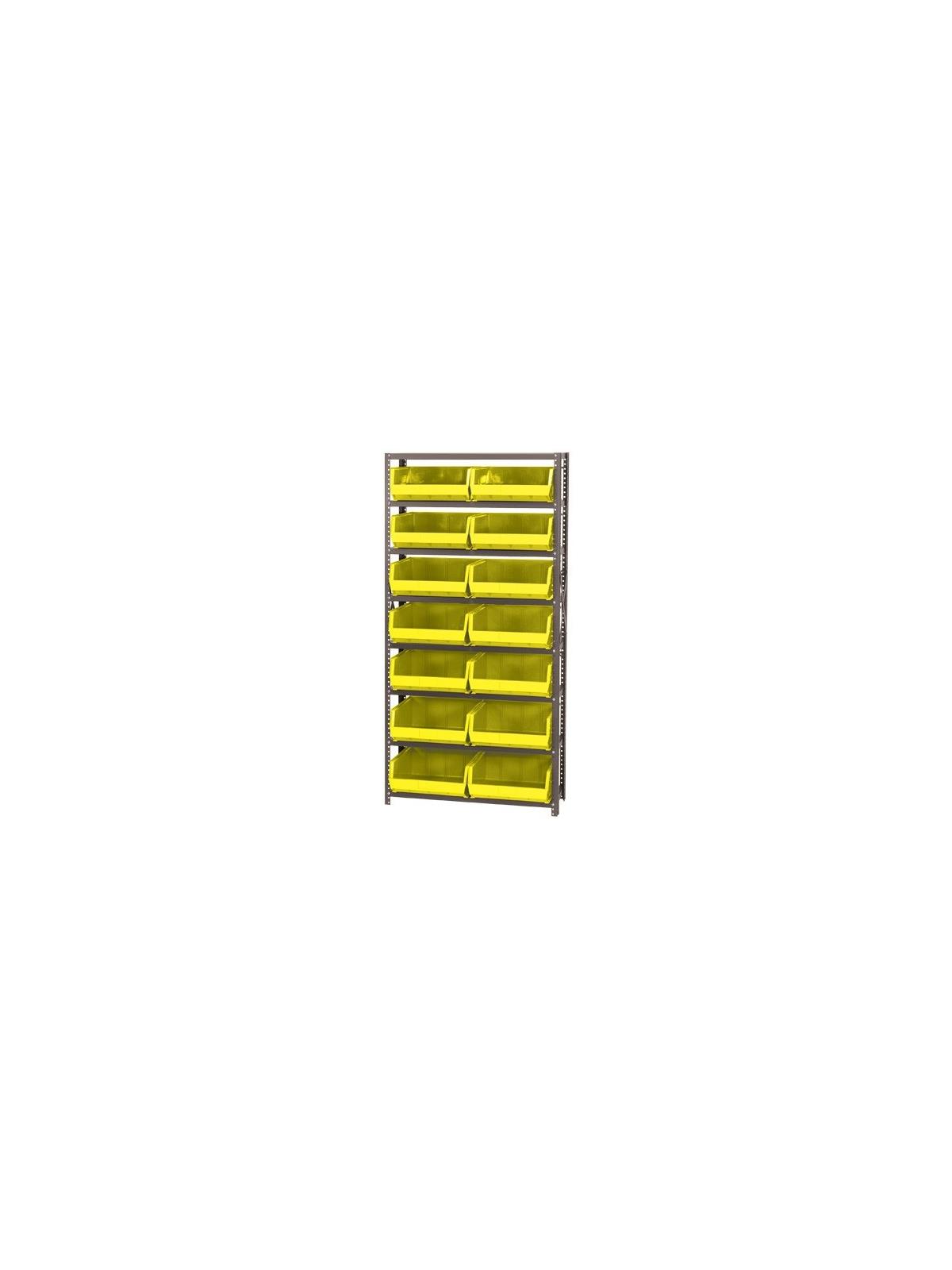 Sold complete with shelving and bins. 350 lb. capacity per shelf. Bins available in Yellow, Blue, Red, Green, Ivory and Black. FOB Shipping Point.