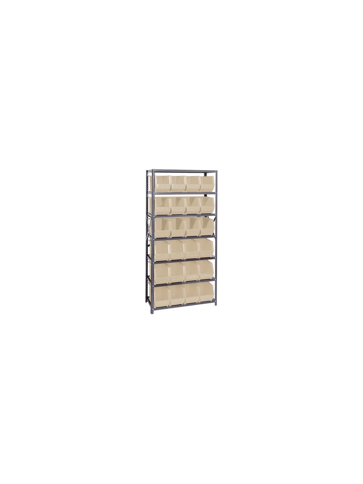 Sold complete with shelving and bins. 350 lb. capacity per shelf. Bins available in Yellow, Blue, Red, Green, Ivory and Black. FOB Shipping Point.