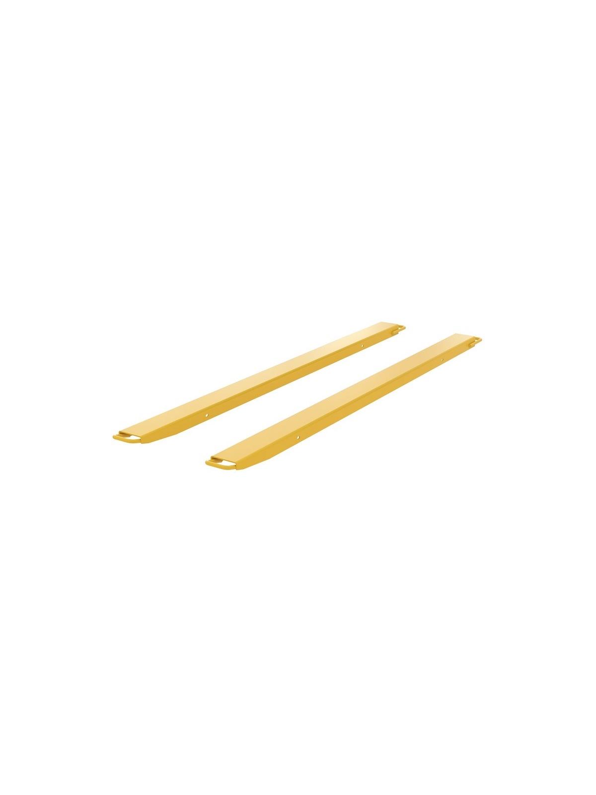 High Strength Fork Extensions are the perfect accessory for new or existing forks. The high strength material provides extra support needed to lift large heavy objects with a fork lift. A 3/16" thickness and included lifting handle for simple placement of the extension onto the lifting fork. These models are almost 40% lighter than standard fork extensions. 4,000 pound capacity is evenly distributed per pair. A powder coat finish is included to diminish scrapes and minimize abrasion during use. Baked-in powder coat finish for added toughness. FOB Shipping Point.