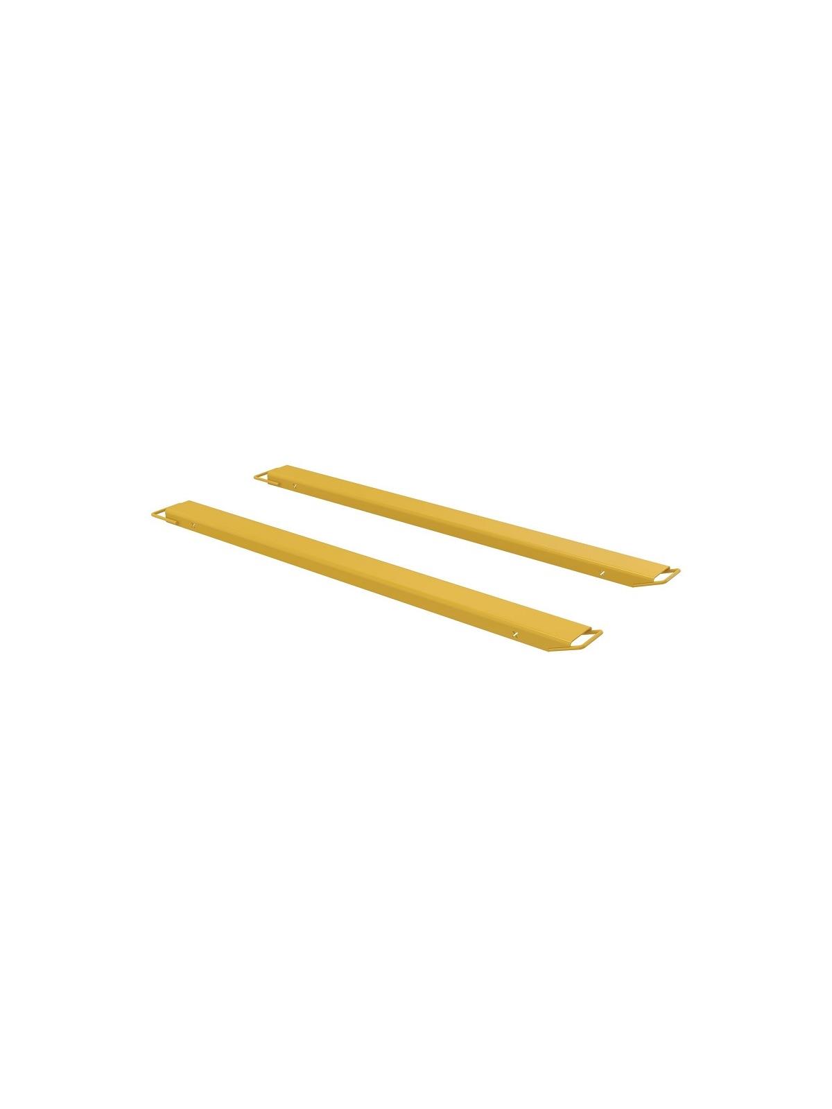 High Strength Fork Extensions are the perfect accessory for new or existing forks. The high strength material provides extra support needed to lift large heavy objects with a fork lift. A 3/16" thickness and included lifting handle for simple placement of the extension onto the lifting fork. These models are almost 40% lighter than standard fork extensions. 4,000 pound capacity is evenly distributed per pair. A powder coat finish is included to diminish scrapes and minimize abrasion during use. Baked-in powder coat finish for added toughness. FOB Shipping Point.