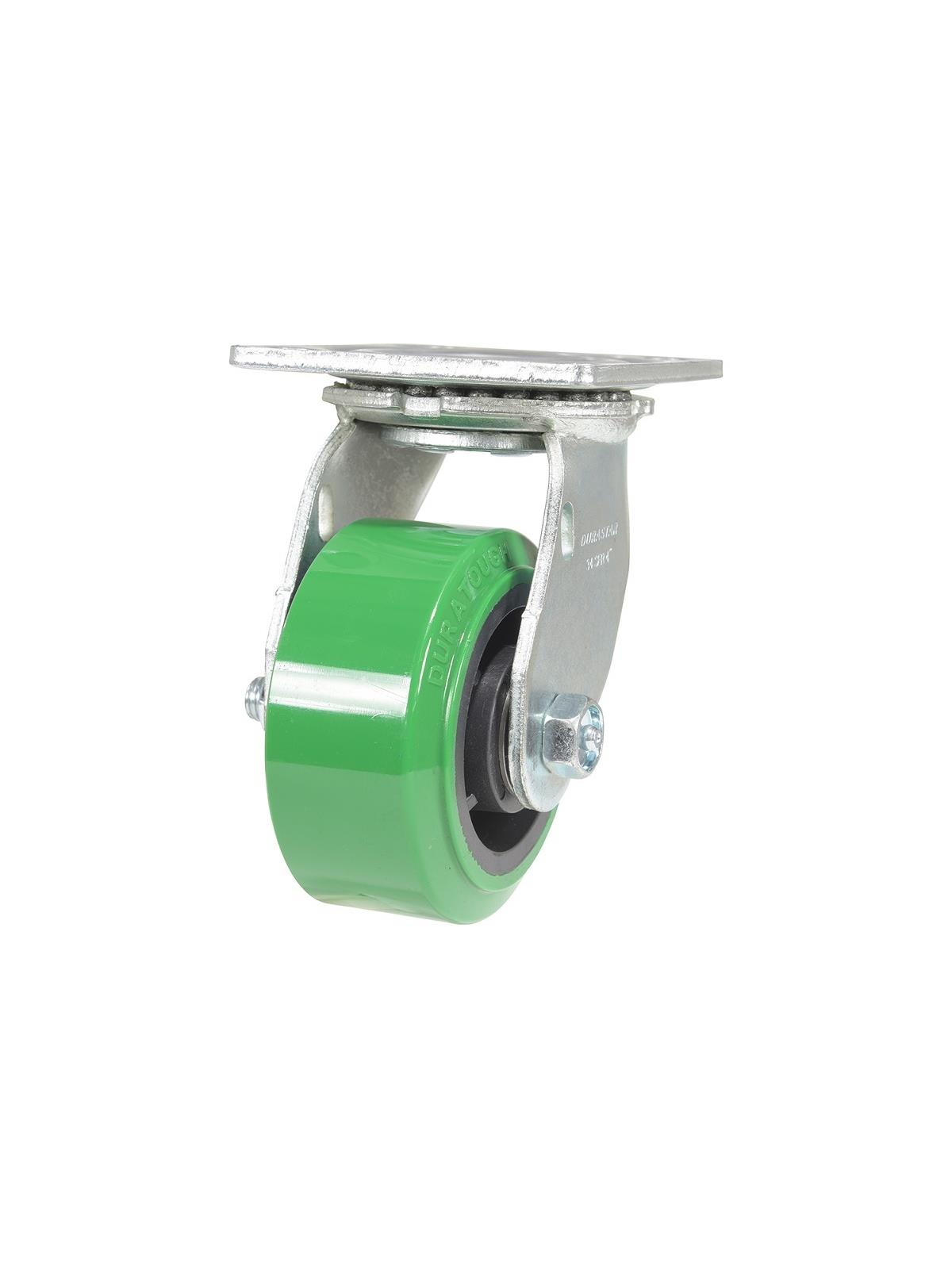 Made of professional grade polyurethane, designed with a new liquid cast flow affusion that ensures a 100% bond to core and 0% trapped air. The unique formula assists in avoiding disintegration that can occur in most plastic wheels, and provides five times longer wheel tread life than standard polyurethane. This caster is resistant to oil, grease, water and most solvents. Top plate size 4" x 4-1/2". FOB Shipping Point.