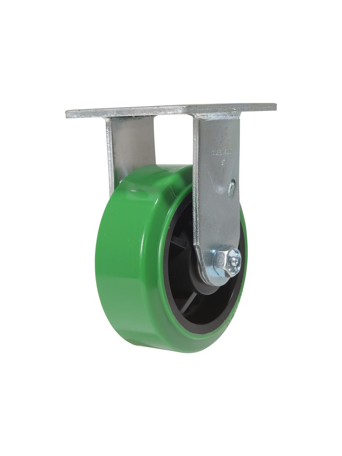 Made of professional grade polyurethane, designed with a new liquid cast flow affusion that ensures a 100% bond to core and 0% trapped air. The unique formula assists in avoiding disintegration that can occur in most plastic wheels, and provides five times longer wheel tread life than standard polyurethane. This caster is resistant to oil, grease, water and most solvents. Top plate size 4" x 4-1/2". FOB Shipping Point.