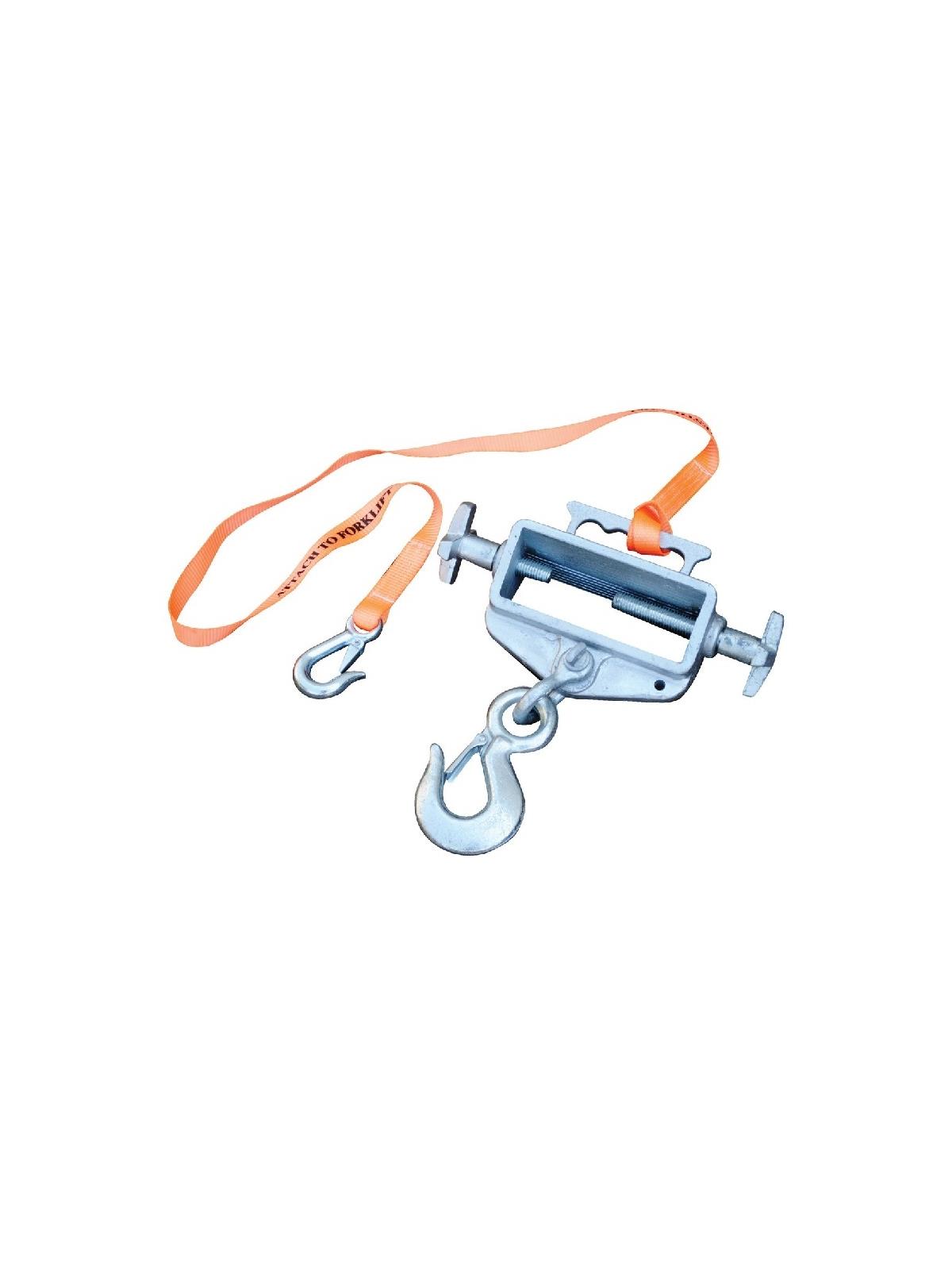 Easy to attach hoisting hook does not require special tools. Secured to the fork truck by means of a 48"L safety restraint and screw clamps. Available in single or double fork design. Both single and double attachments are zinc plated. Swivel or rigid hook with shackle included. FOB Shipping Point.
