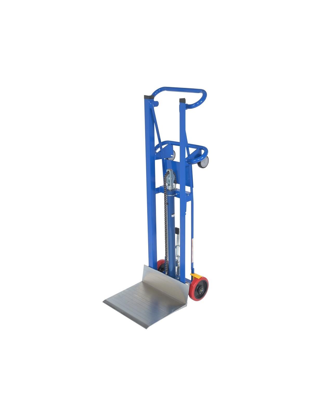 Upper wheels standard for loading into trucks. Safe, easy one person handling of loads up to 1000 lbs. Rugged steel construction for years of dependable service. Precision built hydraulic system is activated by easy action foot lever. FOB Shipping Point.