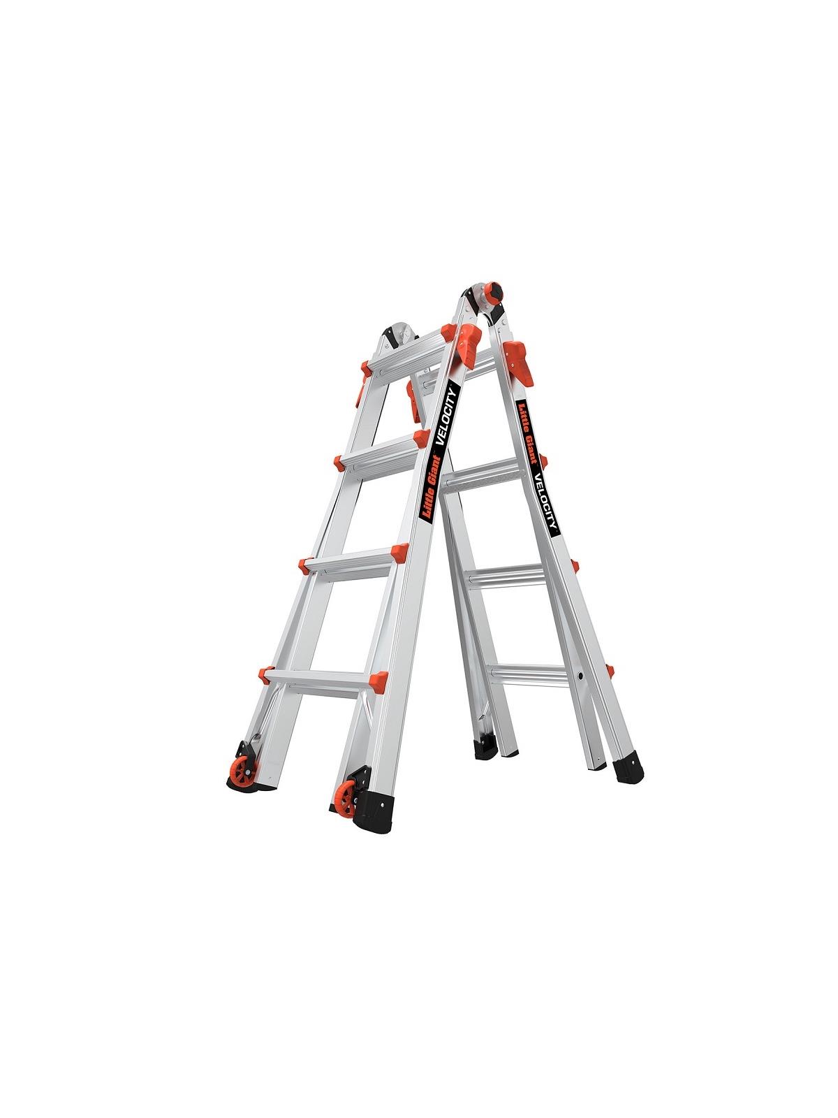 When it comes to articulating ladders, the Velocity™ by Little Giant is by far the best value for the money. Velocity™ features some of the latest patents and improvements in multi-use ladder design, Rock Lock® adjusters for fast, easy adjustment, Tip & Glide™ Wheels for easy transport (except for H15413-001), and wide rungs for improved balance, comfort and safety. Ladder works as an A-Frame, extension, staircase, 90-degree and even as trestle-and-plank scaffolding system. Use the right ladder for the right job every time and avoid 95% of all ladder related safety issues. The Velocity™ Ladder meets all OSHA & ANSI standards for the Type IA-300 lb. rating. FOB Shipping Point.
