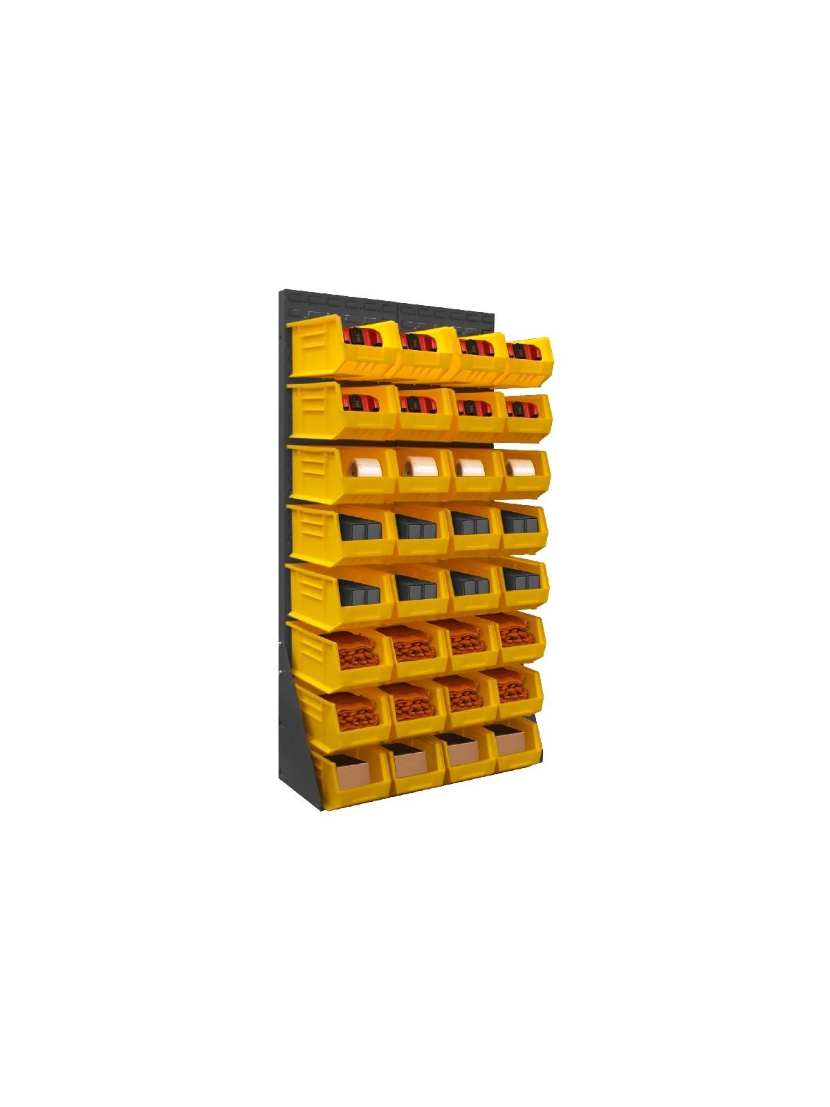 Louvers accommodate all sizes of Hook-On-Bins® (Bins are sold separately.) Tray shelves can be purchased as an accessory 1/4" holes for wall mounting - hardware not included. Durable, textured, powder coat finish. FOB Shipping Point.