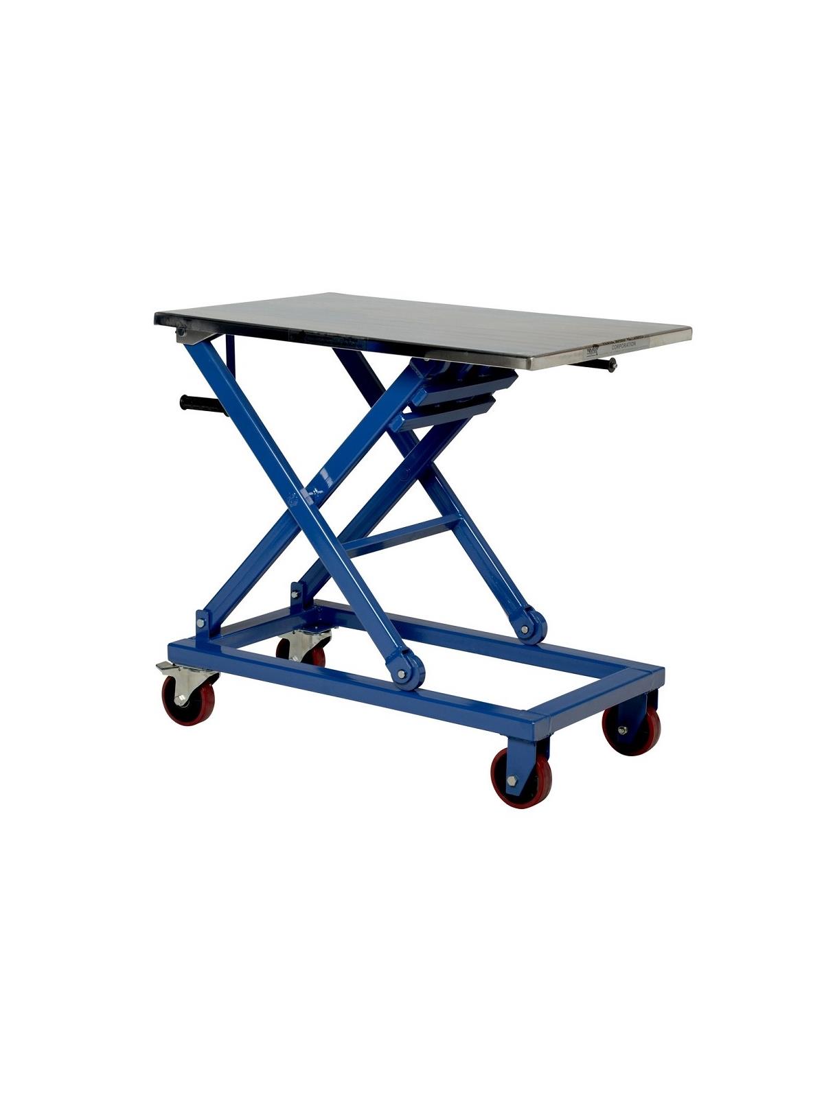 Raise and lower material quickly and easily with Mechanical Scissor Carts. Carts roll smoothly on two rigid and two swivel poly-on-poly caster. Mechanical screw drive provides precise positioning with no downward drift. The partially stainless steel cart features a stainless steel platform. Frame, handle, caster rigs and hardware are zinc plated. Crank assembly and scissor legs are painted. FOB Shipping Point.