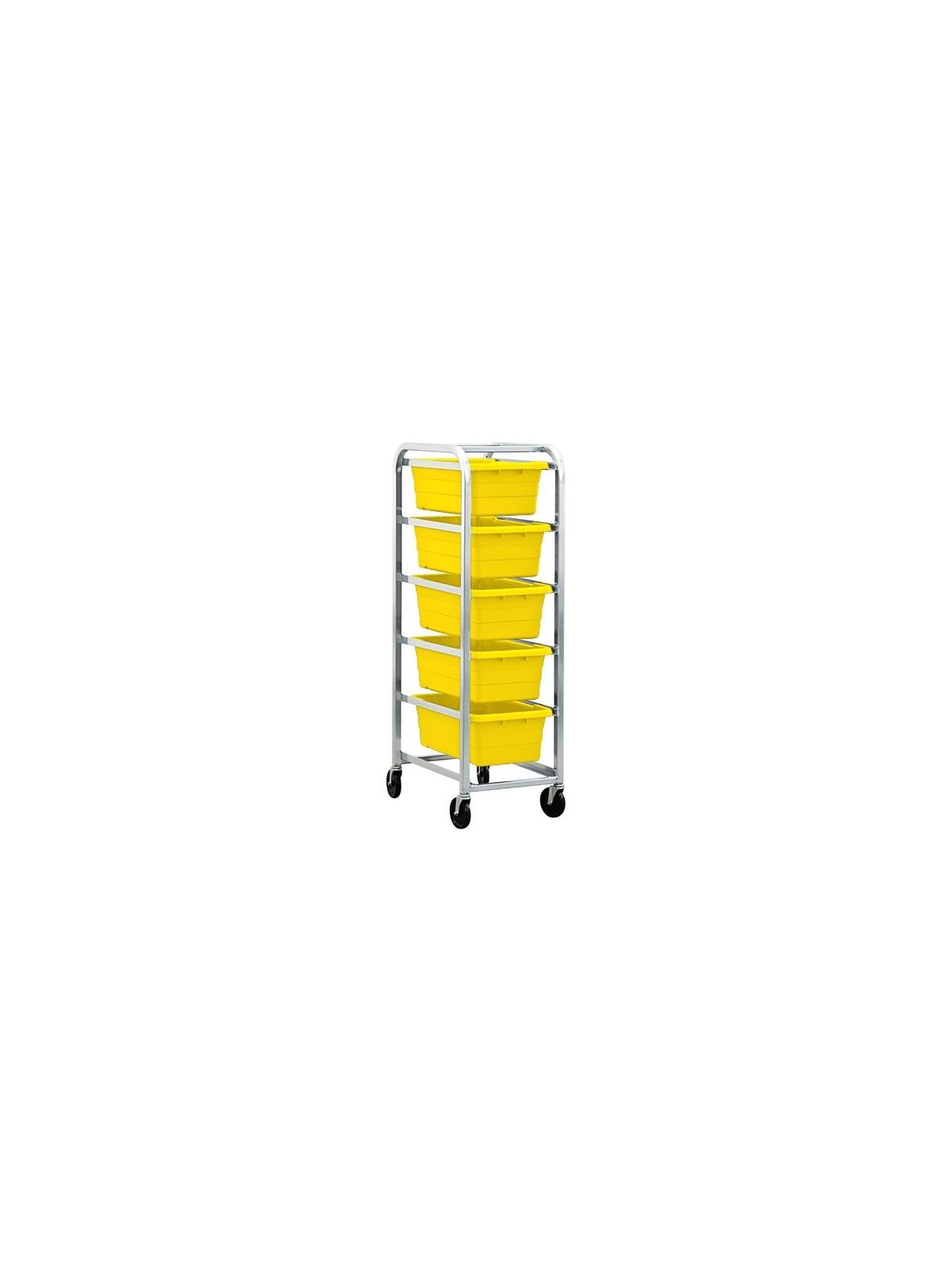Aluminum Tub Rack transports and stores all kinds of products. Cart comes complete with tubs. Rolls on 5" rubber wheel casters. Tubs available in Gray, Blue, White, Red, or Yellow. FOB Shipping Point.
