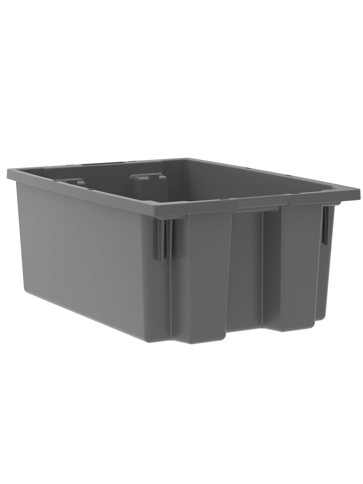 Heavy-duty construction provides a superior service life resulting in lower replacement costs than “budget-priced” totes. Smooth surfaces are easy to clean and are resistant to most solvents and chemicals. Available optional lids protect contents from dust and damage. Stackable with or without lids for shipping. When empty and without lids, totes nest for space saving storage. Available in Red, Blue, or Gray. Gray totes manufactured from FDA-approved materials. FOB Shipping Point.