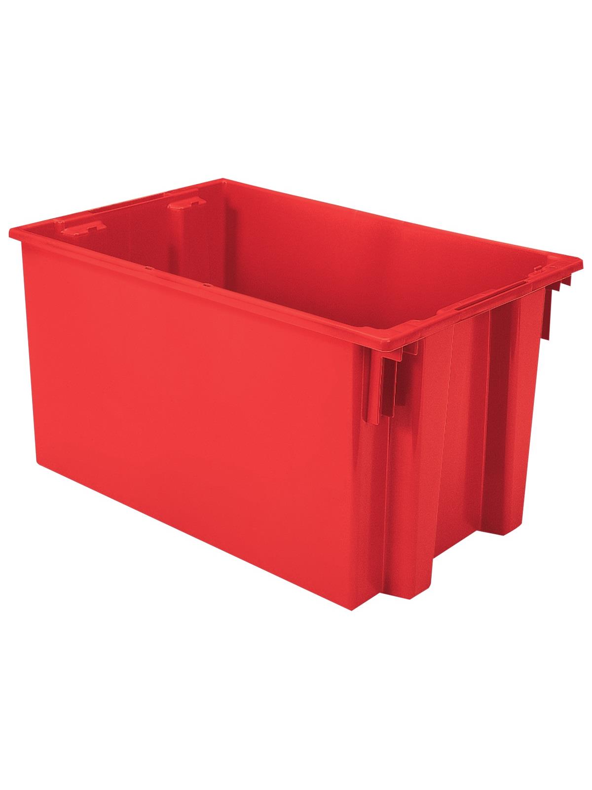 Heavy-duty construction provides a superior service life resulting in lower replacement costs than “budget-priced” totes. Smooth surfaces are easy to clean and are resistant to most solvents and chemicals. Available optional lids protect contents from dust and damage. Stackable with or without lids for shipping. When empty and without lids, totes nest for space saving storage. Available in Red, Blue, or Gray. Gray totes manufactured from FDA-approved materials. FOB Shipping Point.