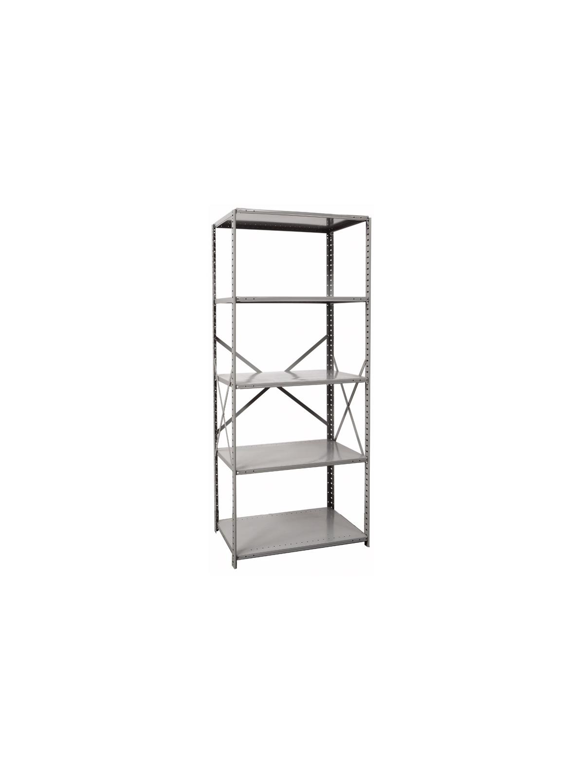 Shelves are box formed at front and back allowing high capacity storage with minimal deflection. Sides of shelves are triple flanged adding to shelf strength. Compression shelf clips improve overall unit capacity. Posts are punched to allow shelves to be adjusted top to bottom at 1-1/2” on center. Beaded front posts allow use of full shelf width and are common between adjoining units reducing assembly and installation time as well as reducing cost. Angle back posts can be bolted together when joining units side-by-side or back-to-back. Side and back sway braces eliminate units sway providing a safe storage solution. Color: Dark Gray (HG). FOB Shipping Point.