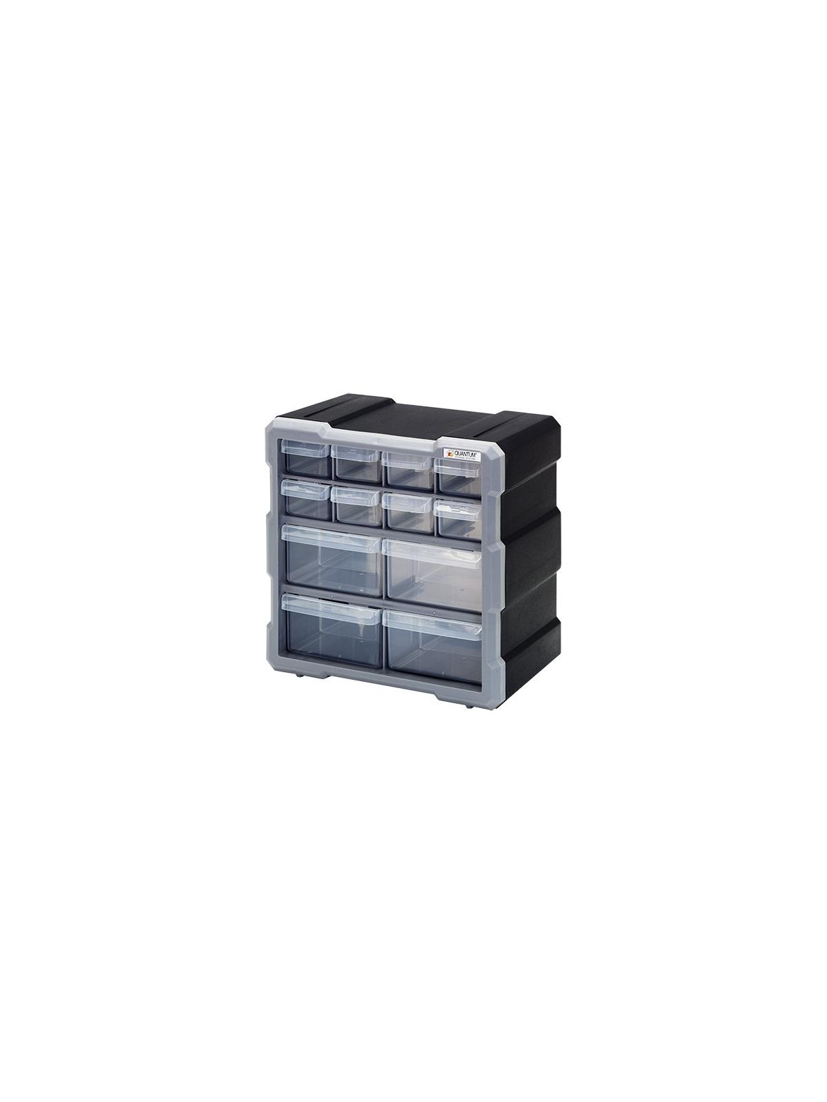 Heavy-duty reinforced construction with durable high impact polypropylene frame and clear polypropylene drawers and bins. See through drawers come with drawer dividers for every drawer. Stable stacking and mounting. Drawer stops prevent spills. Textured drawer pulls. FOB Shipping Point.