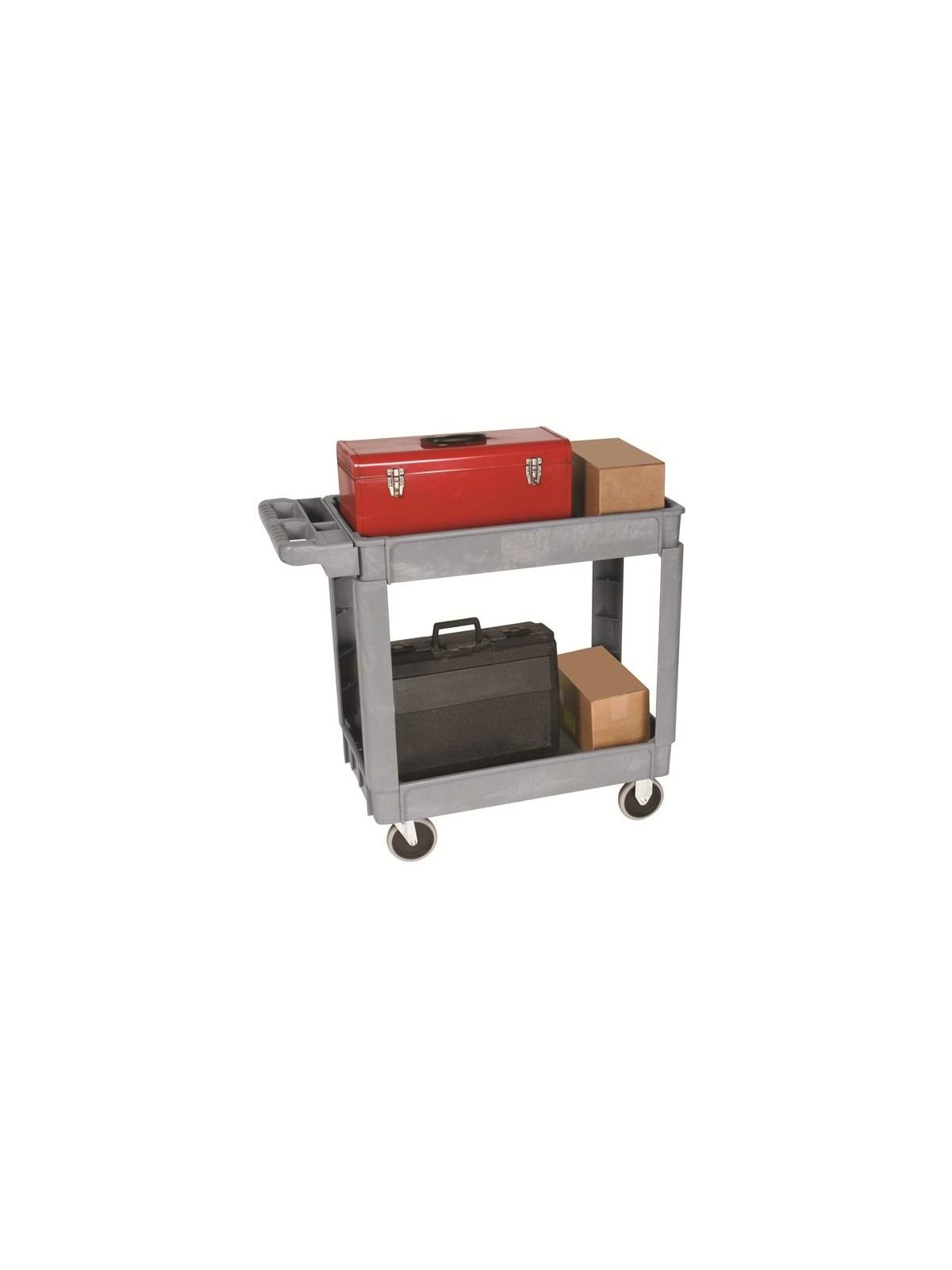 This line of high quality, low priced, polypropylene service carts are available in two sizes with an optional third shelf. 550 lb. capacity. Push handle has compartments to accommodate a variety of tools, labels, small parts and more. Includes 5” non-marking casters. Ships KD in box. FOB Shipping Point.