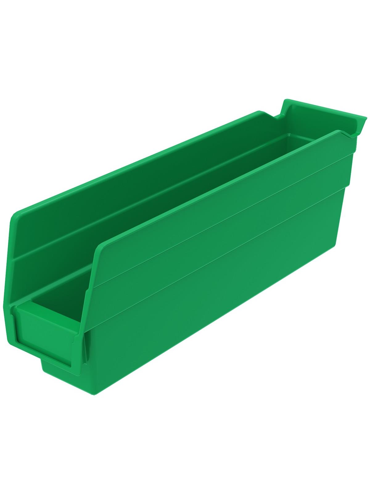 Outlasts corrugated bins - pays for themselves in reduced replacement costs. One-piece construction is waterproof and unaffected by grease or oil. Works with 12", 18" and 24" deep shelving, or vertical storage and retrieval units. Labels available. Available in 22 sizes and five colors - Red, Yellow, Blue, Green, or Semi-Clear. FOB Shipping Point.