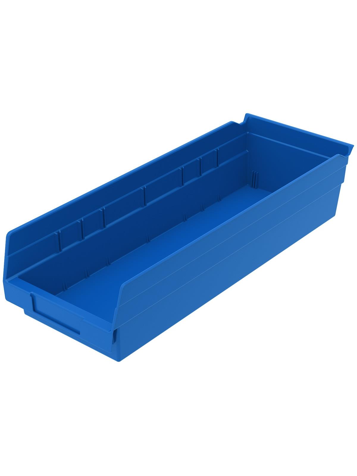 Outlasts corrugated bins - pays for themselves in reduced replacement costs. One-piece construction is waterproof and unaffected by grease or oil. Works with 12", 18" and 24" deep shelving, or vertical storage and retrieval units. Labels available. Available in 22 sizes and five colors - Red, Yellow, Blue, Green, or Semi-Clear. FOB Shipping Point.