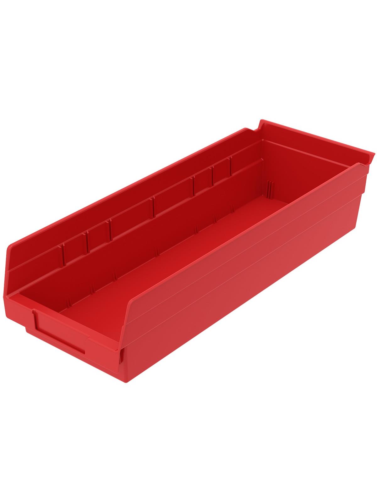 Outlasts corrugated bins - pays for themselves in reduced replacement costs. One-piece construction is waterproof and unaffected by grease or oil. Works with 12", 18" and 24" deep shelving, or vertical storage and retrieval units. Labels available. Available in 22 sizes and five colors - Red, Yellow, Blue, Green, or Semi-Clear. FOB Shipping Point.