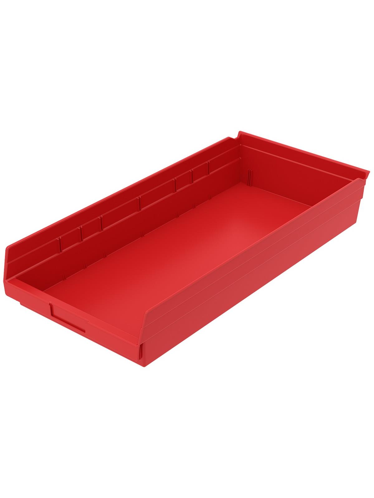 Outlasts corrugated bins - pays for themselves in reduced replacement costs. One-piece construction is waterproof and unaffected by grease or oil. Works with 12", 18" and 24" deep shelving, or vertical storage and retrieval units. Labels available. Available in 22 sizes and five colors - Red, Yellow, Blue, Green, or Semi-Clear. FOB Shipping Point.