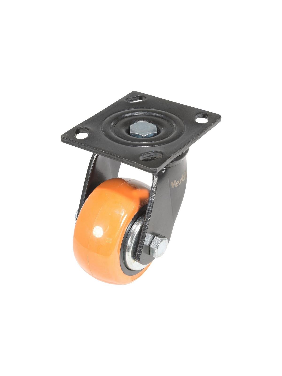 The perfect asset for an assortment of commercial and non-commercial settings. Swivel design allows the user to maneuver and change directions instantaneously. Wheel core is made of polypropylene. 95 /-5 Shore A. FOB Shipping Point.