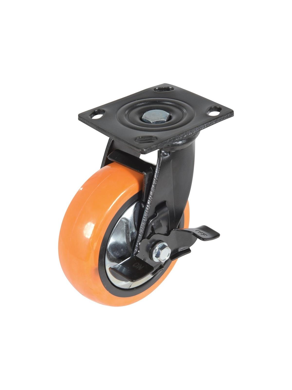 The perfect asset for an assortment of commercial and non-commercial settings. Swivel design allows the user to maneuver and change directions instantaneously. Wheel core is made of polypropylene. 95 /-5 Shore A. FOB Shipping Point.