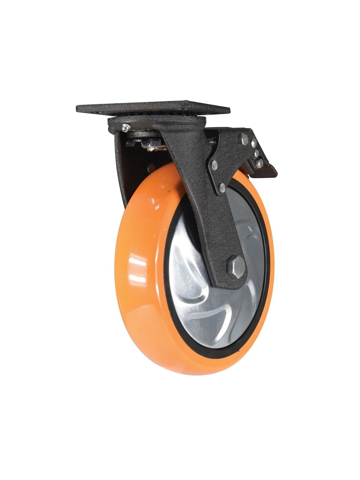 The perfect asset for an assortment of commercial and non-commercial settings. Swivel design allows the user to maneuver and change directions instantaneously. Wheel core is made of polypropylene. 95 /-5 Shore A. FOB Shipping Point.