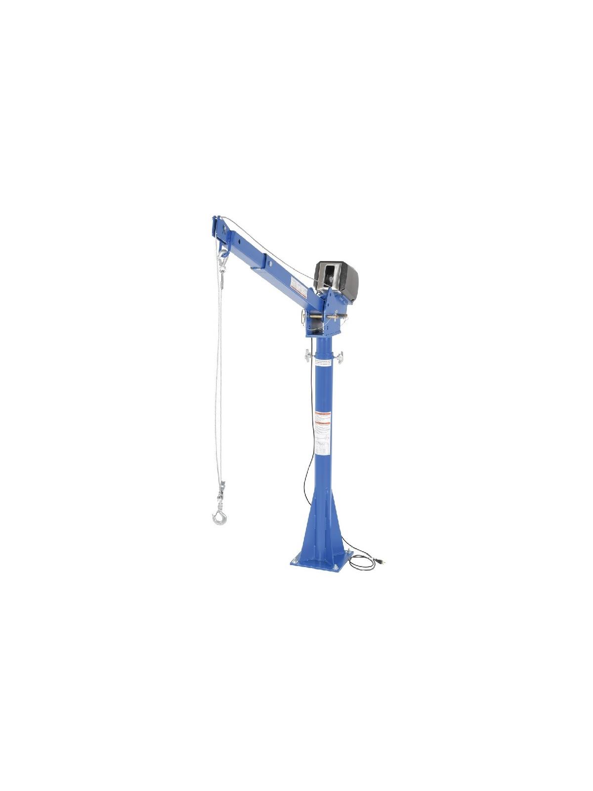B) The economical answer to your material handling problems. Offers light duty, intermittent use. Up to 1,500 lbs. uniform capacity at 27-13/16" boom extension. 360° locking manual rotation, 25' of 7/32" cable with hook on AC units, 46' of 3/16" cable on DC units.