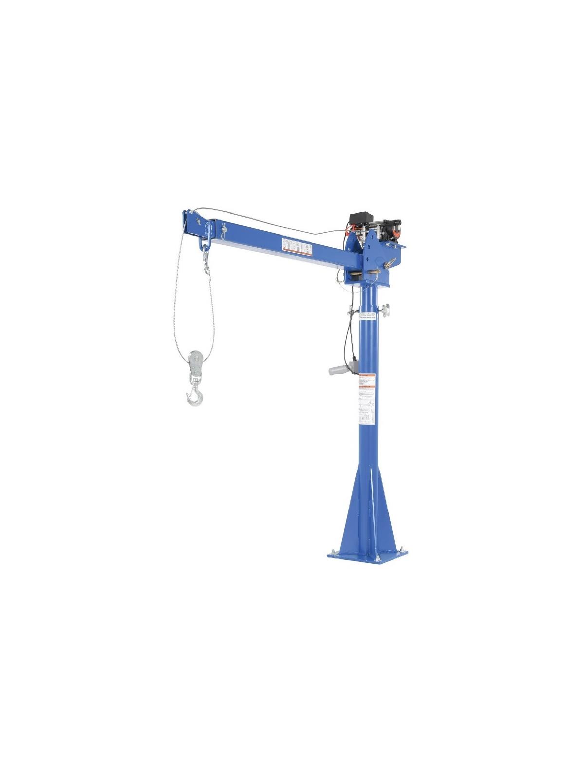 B) The economical answer to your material handling problems. Offers light duty, intermittent use. Up to 1,500 lbs. uniform capacity at 27-13/16" boom extension. 360° locking manual rotation, 25' of 7/32" cable with hook on AC units, 46' of 3/16" cable on DC units.