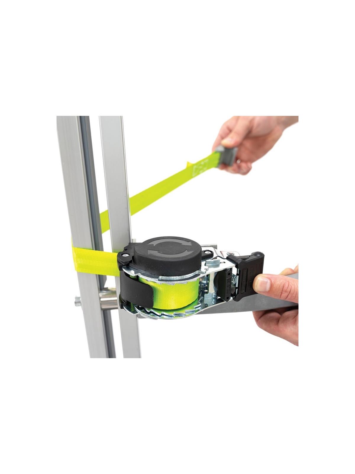 Ratchet strap for maximum load security. Spare battery for extended operation.